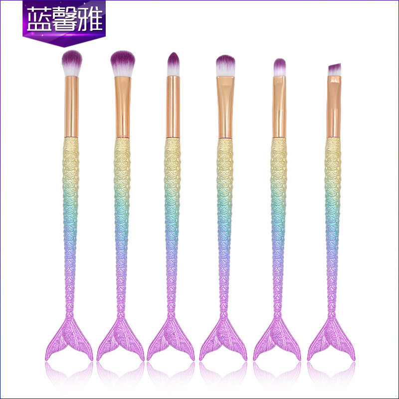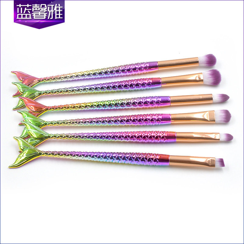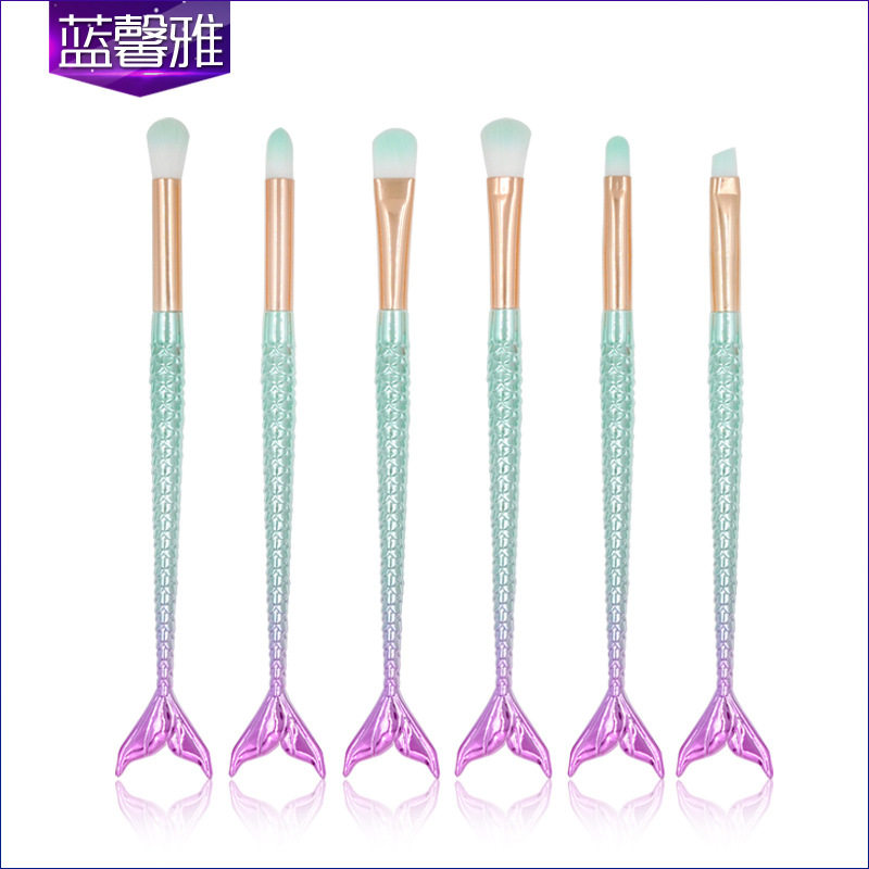 新款 6支小支美人鱼眼部刷化妆刷套装 美化彩妆工具眼影刷眉刷