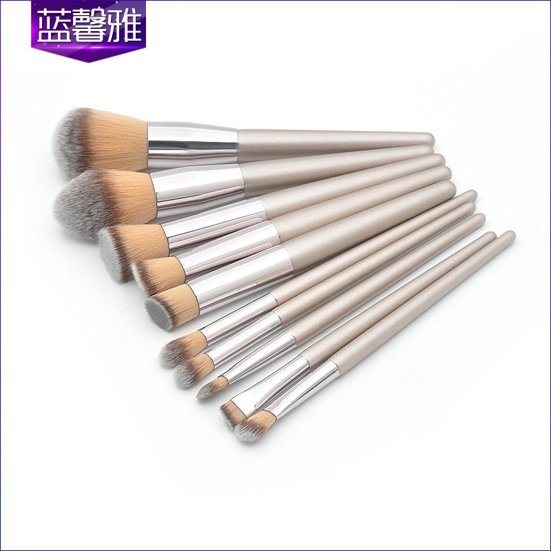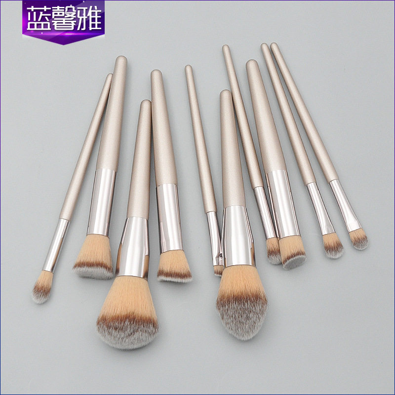 新款 10支香槟金锥形木柄化妆刷套装 纤维毛散粉眼部美妆彩妆工具