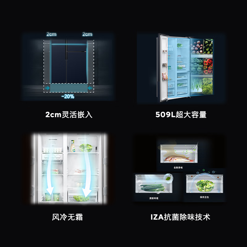 美的华凌神机547双系统超薄零嵌入式十字双开四门家用一级冰箱