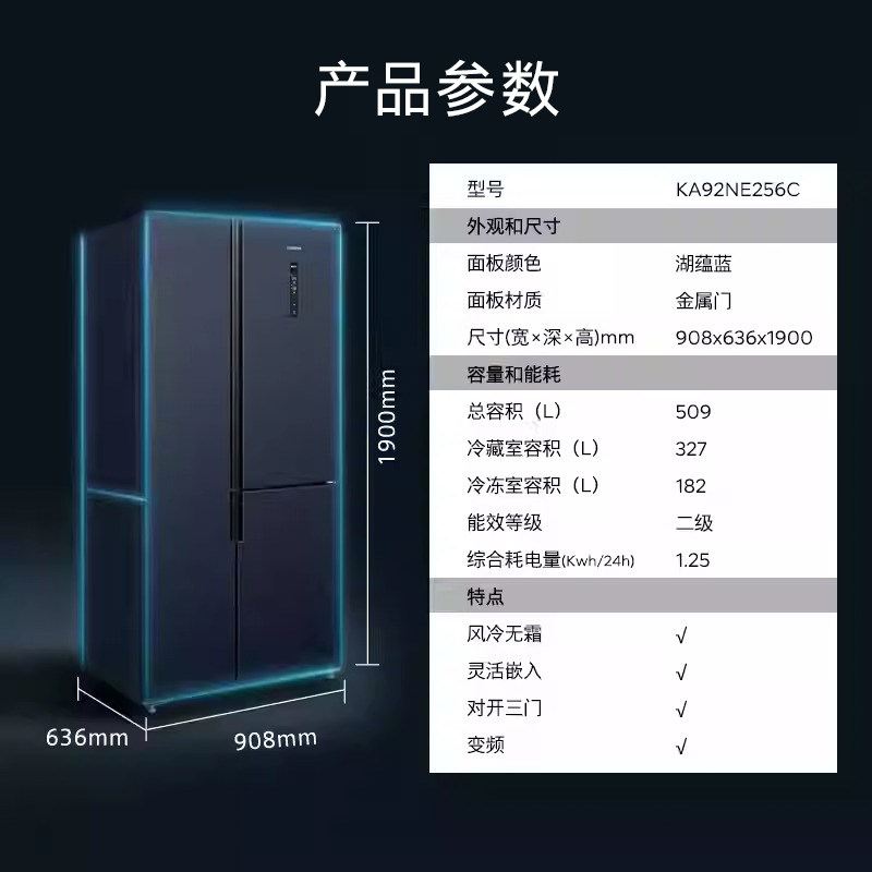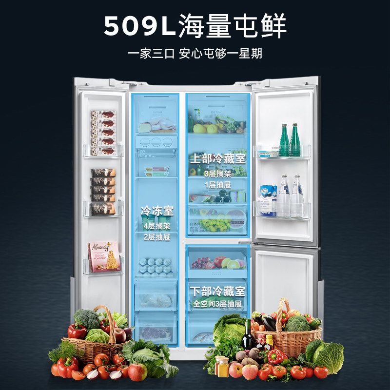 西门子509L大容量风冷无霜对开三门纤薄嵌入冰箱NE256C