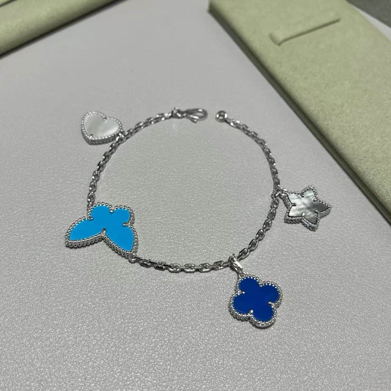 全新高定品质限量版lucky蝴蝶手链四花瓢虫18k白金玫瑰金