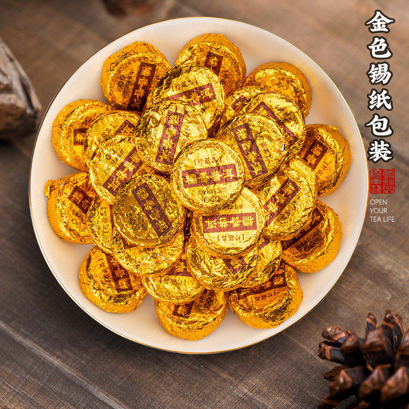 宫明茶叶 云南普洱茶熟茶糯米香小金砖普洱熟茶小圆饼320克礼盒装