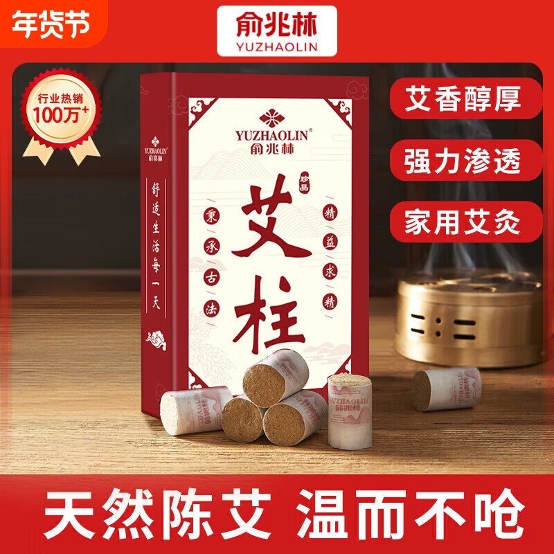 俞兆林艾灸柱无烟艾灸盒54粒陈年艾草纯艾灸热敷艾绒柱棒全身用