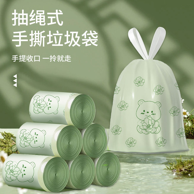 青崎可降解拉抽绳垃圾袋家用加厚手提式厨房环保免撕自动收口大号