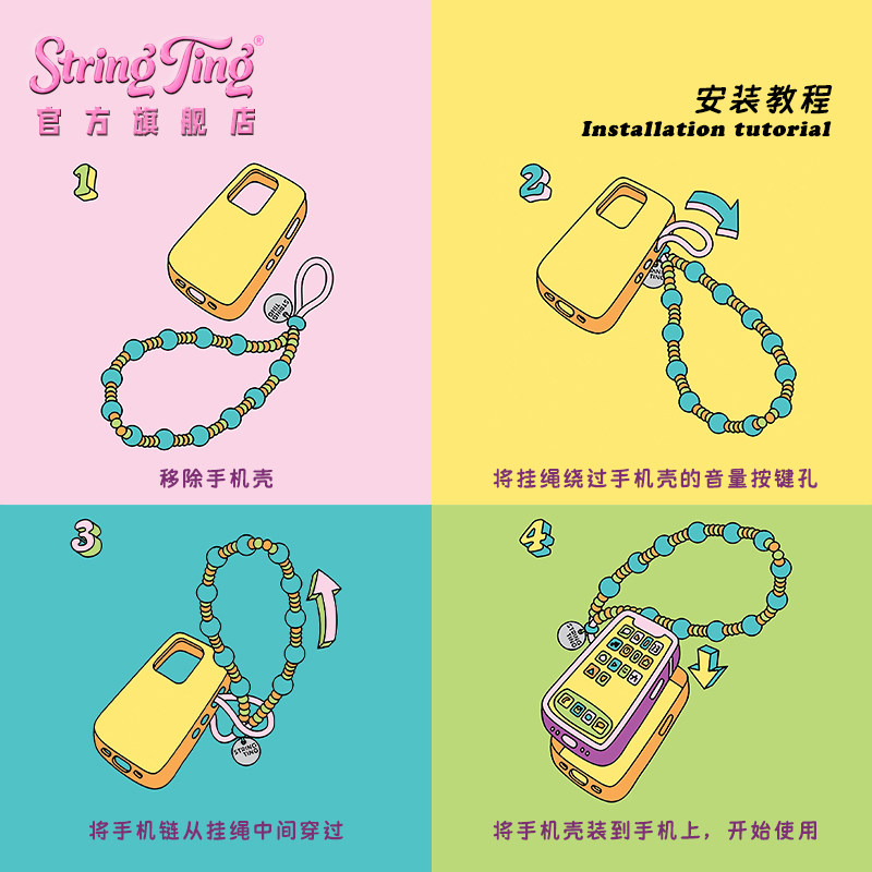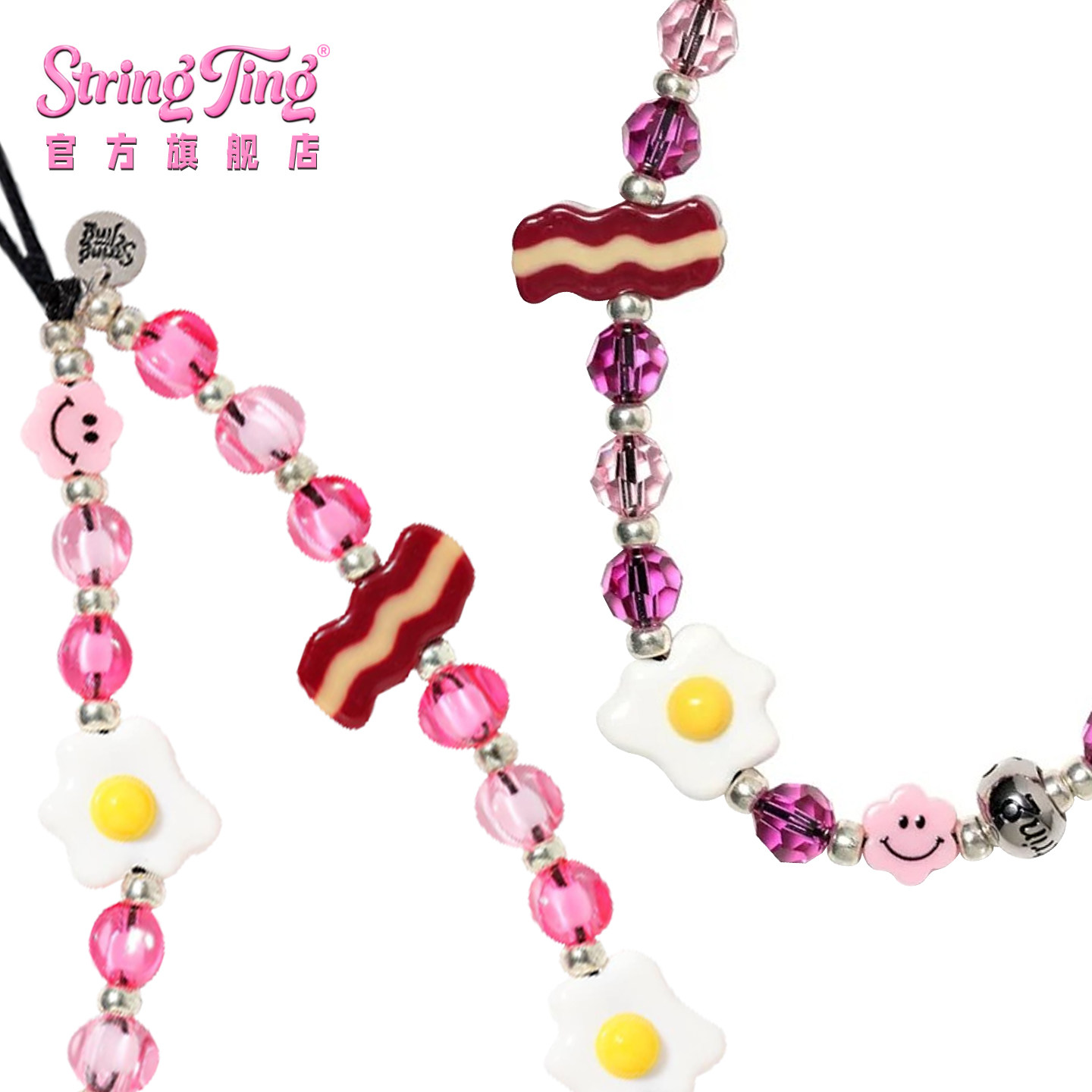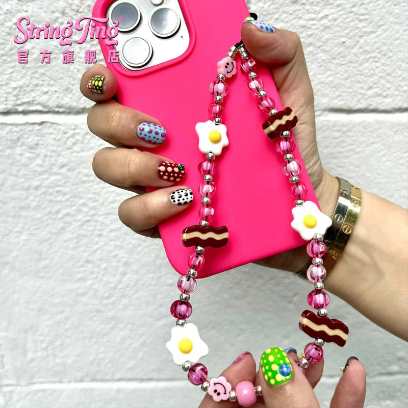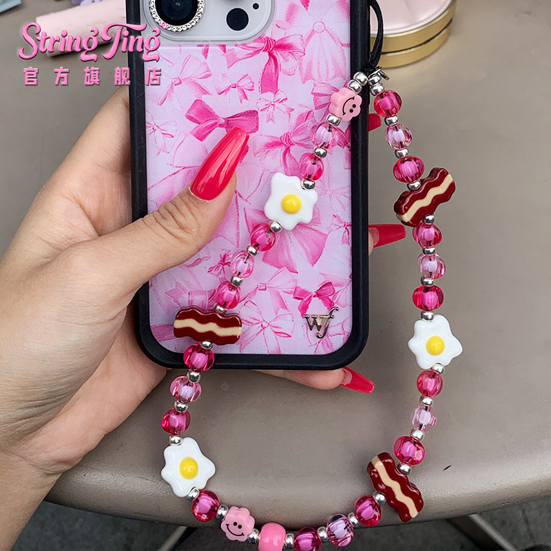 String Ting 蛋香三明治手机链Breakfast适用于iPhone全系列便携挂链挂绳腕带配件串珠水晶链条ins五花肉挂饰
