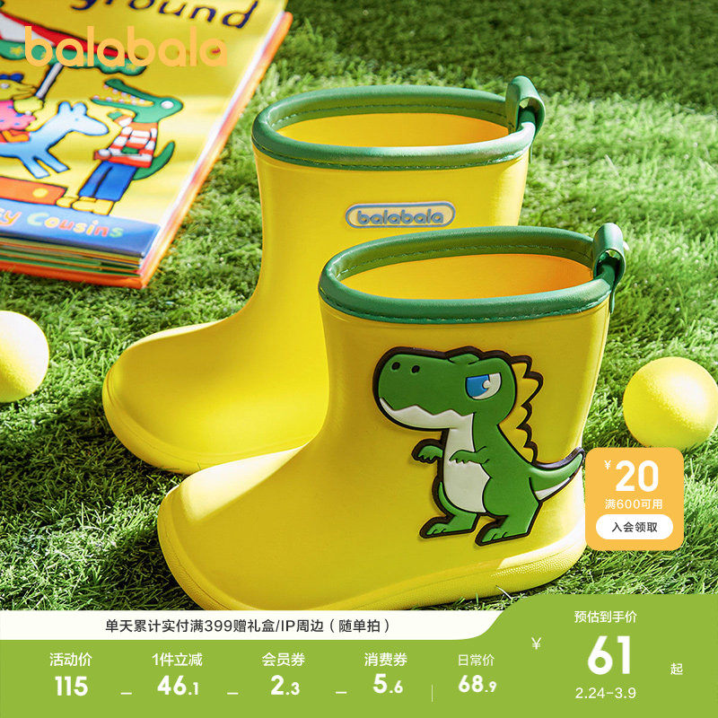 巴拉巴拉童鞋儿童短筒雨靴雨鞋夏男女童靴子卡通图案可爱软底舒适