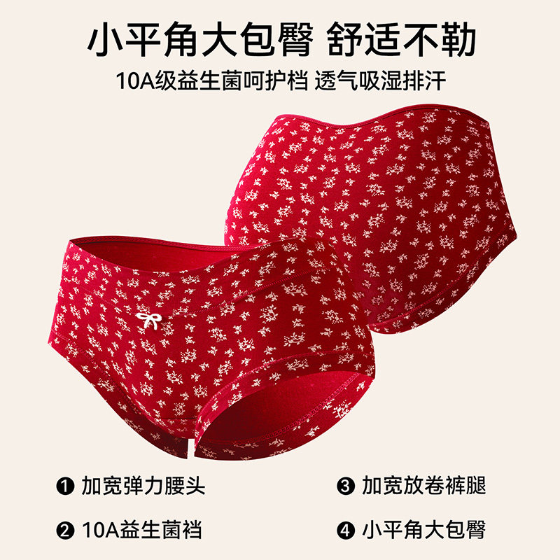 红色内裤女a类纯棉抗菌裆高腰全棉结婚属马年本命年女士三角短裤