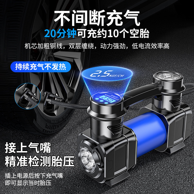 车载充气泵双缸高压大功率家车两用带测胎压电动汽车用轮胎打气泵