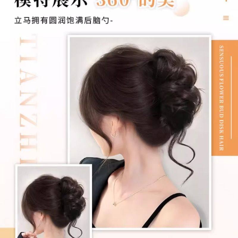 丸子头假发抓夹千金花苞鸡窝头发包盘发发髻仿真发新中式假发发圈