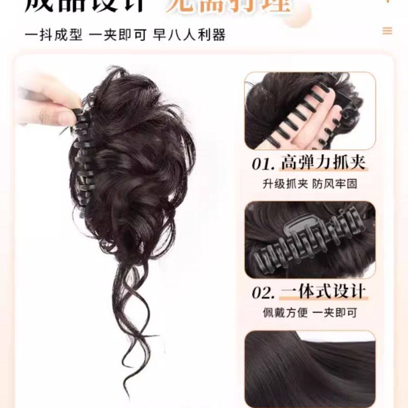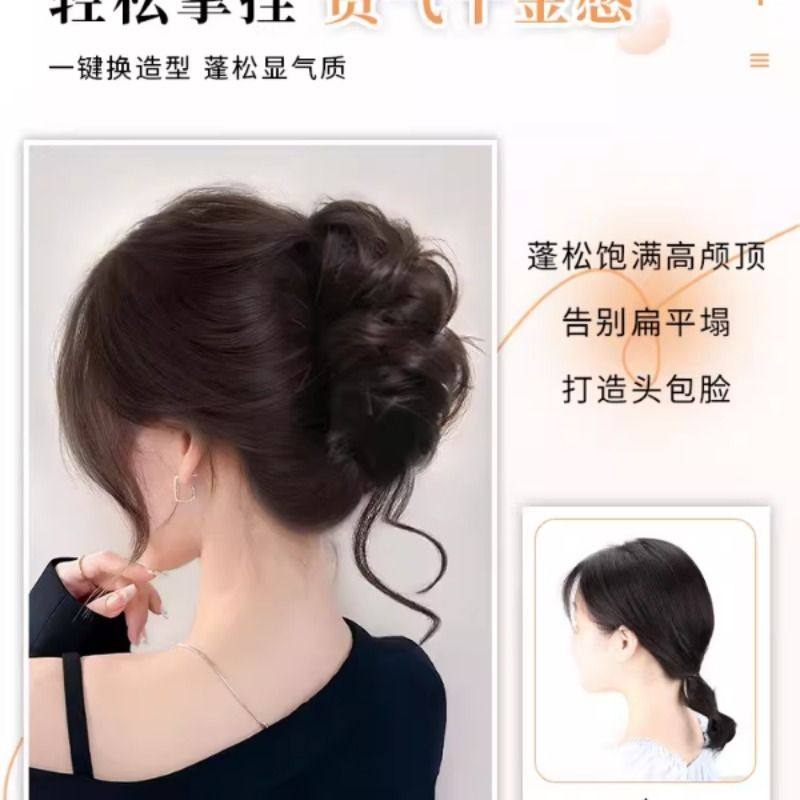 低扎丸子头假发鸡毛头抓夹盘发发包慵懒感造型头饰自然蓬松后脑勺
