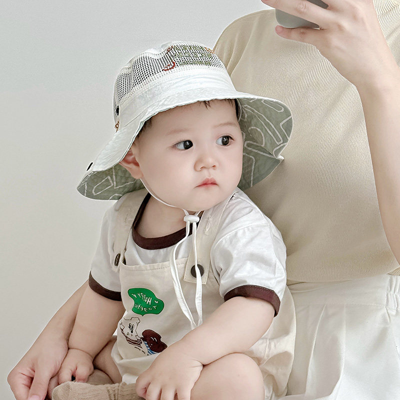 婴儿防晒帽子夏季薄款男童女童网眼渔夫帽宝宝夏天透气太阳遮阳帽