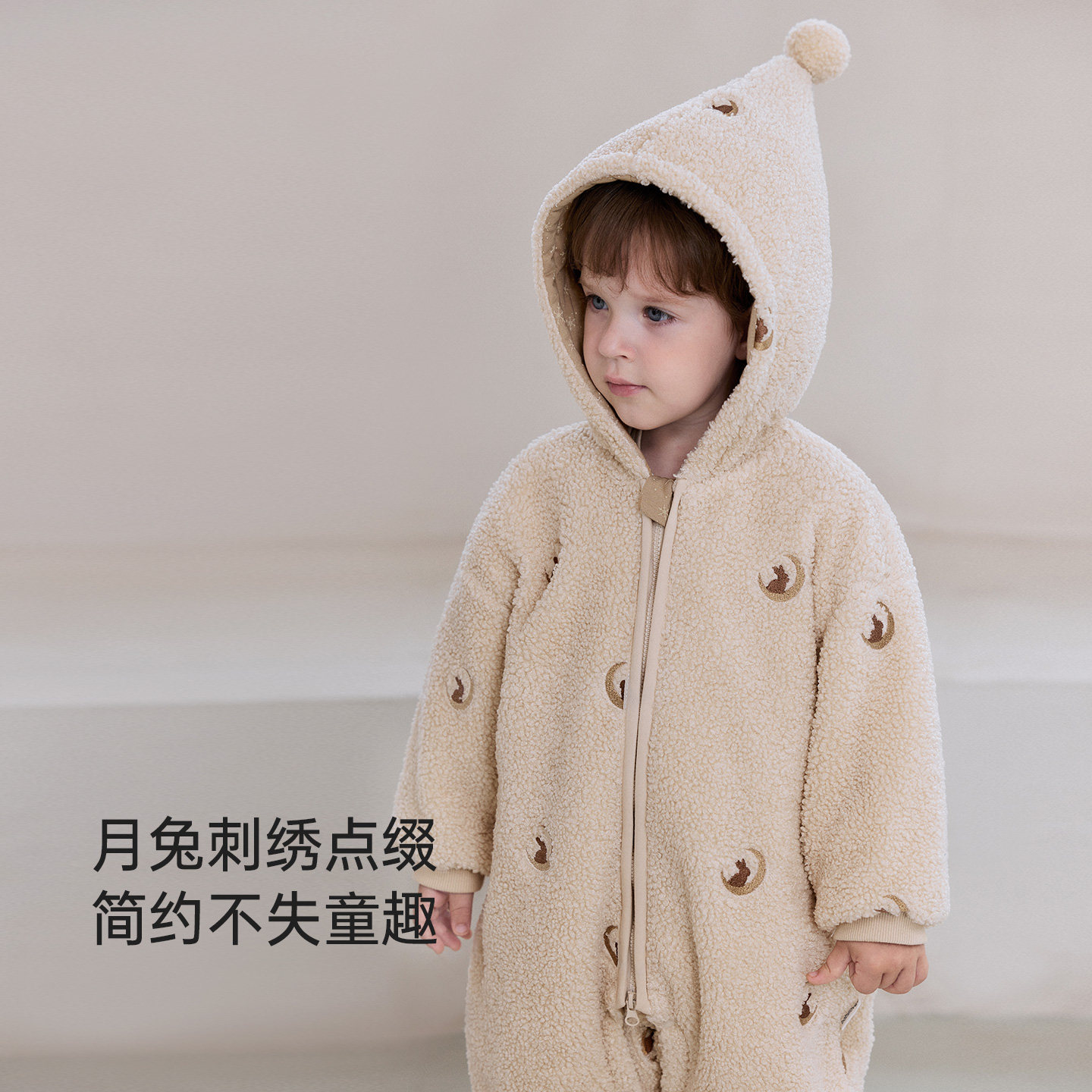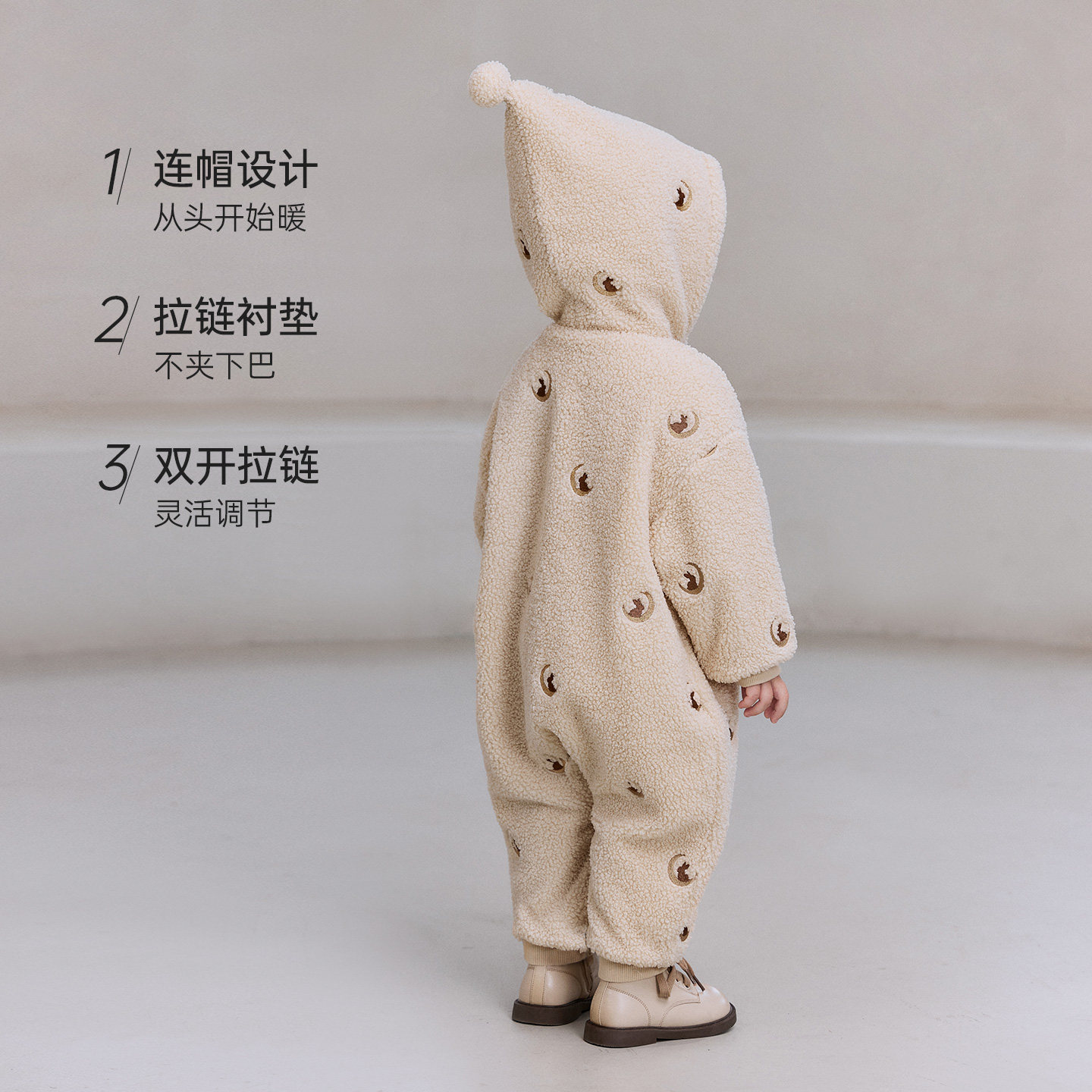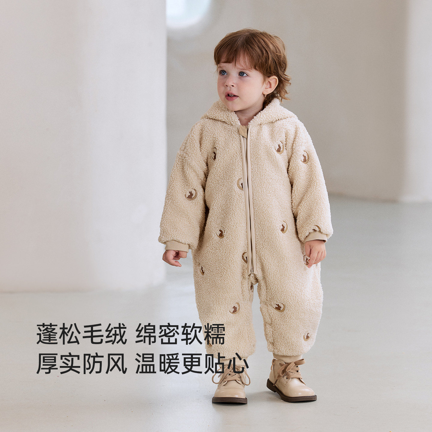 babylove婴儿夹棉连体衣冬季加厚哈衣宝宝毛绒防风连帽保暖外出服