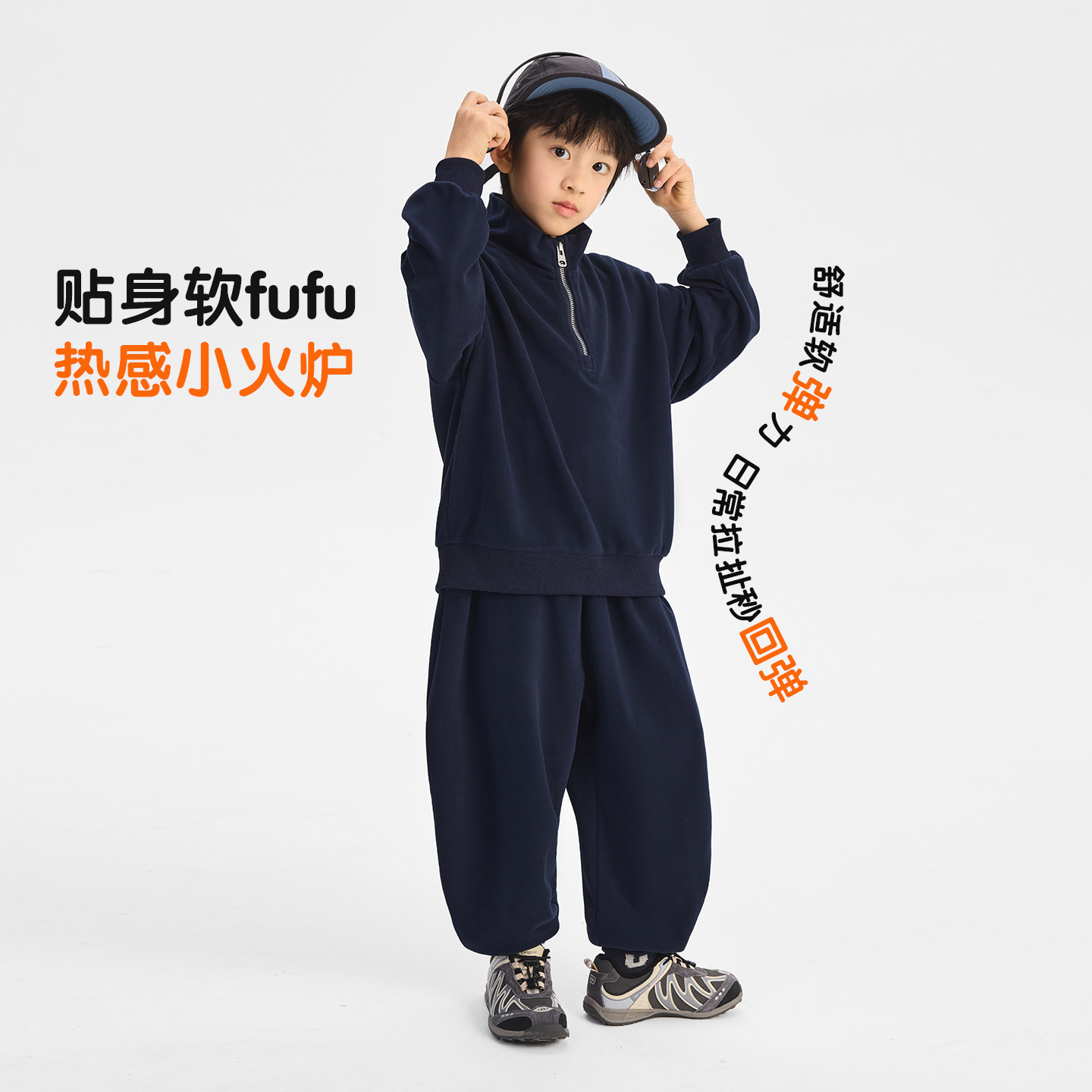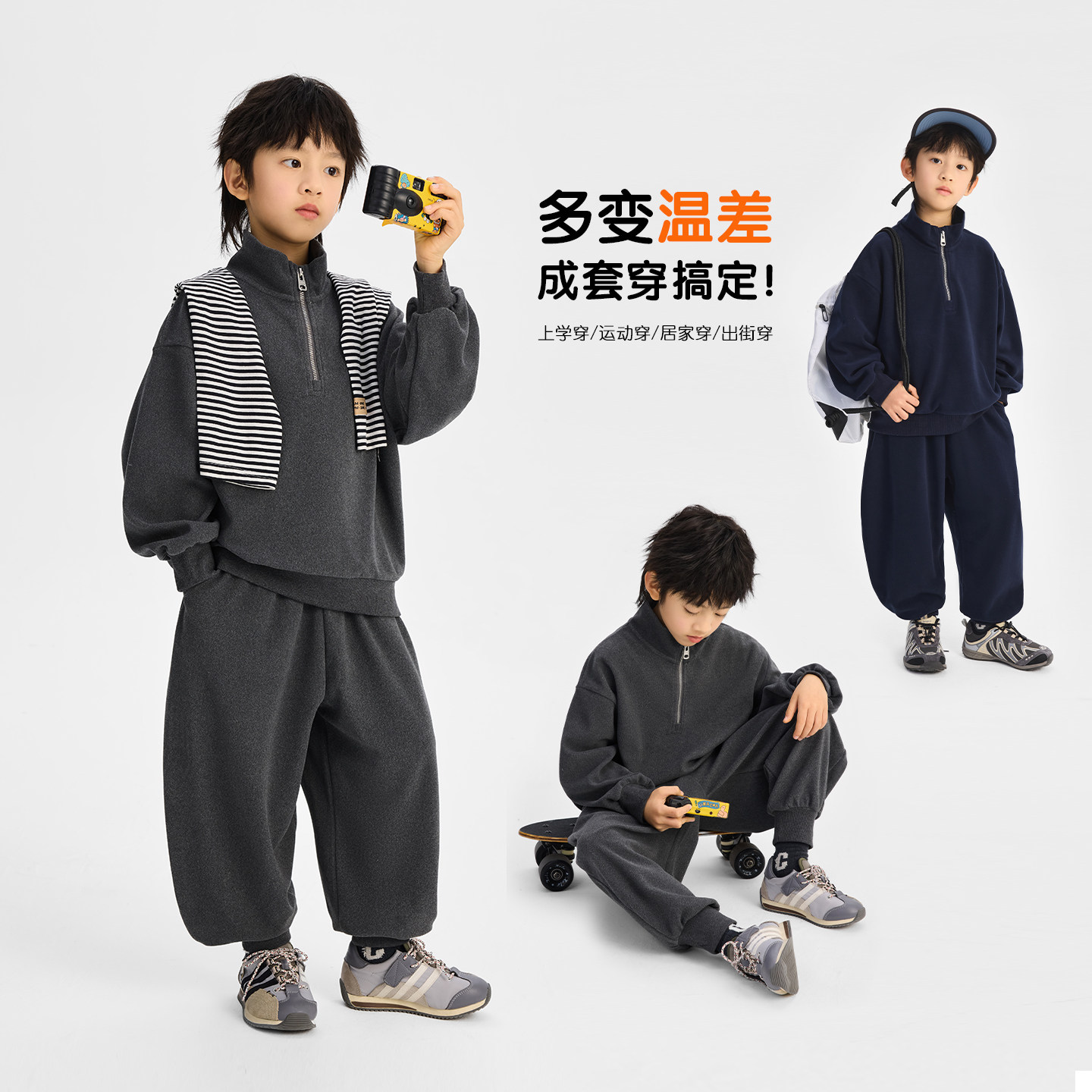 派町童装男童套装大童糯米绒半拉链两件套2026春季新款上衣裤子潮