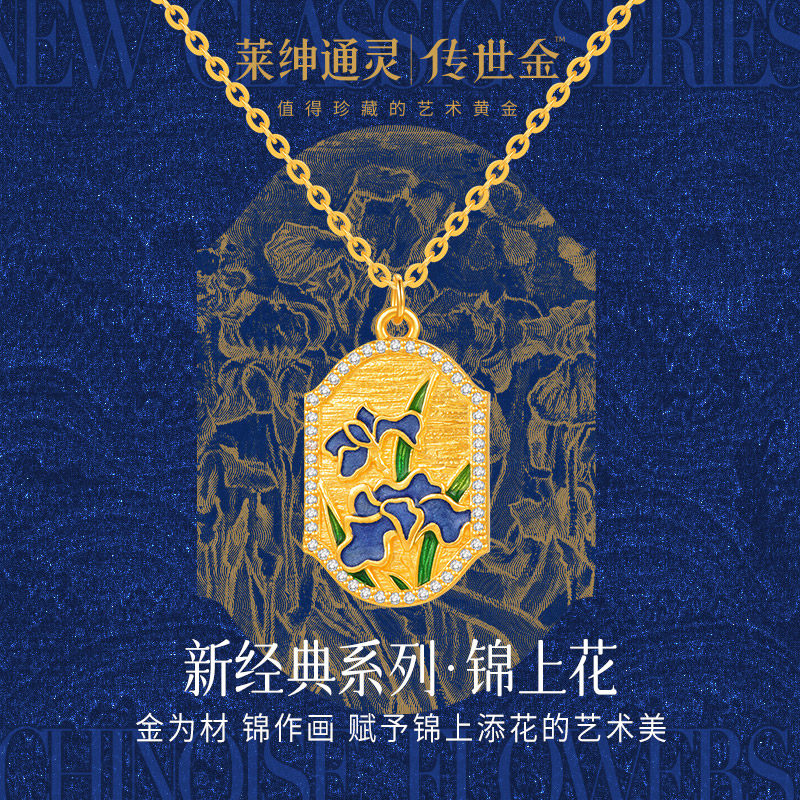 【商场同款】莱绅通灵 传世金新经典系列锦上花 足金钻石项链
