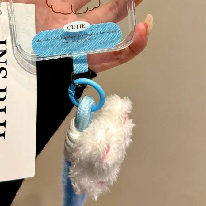 森系ins帽子西高地公仔短款手机挂绳耐用结实编织带挂链创意钥匙