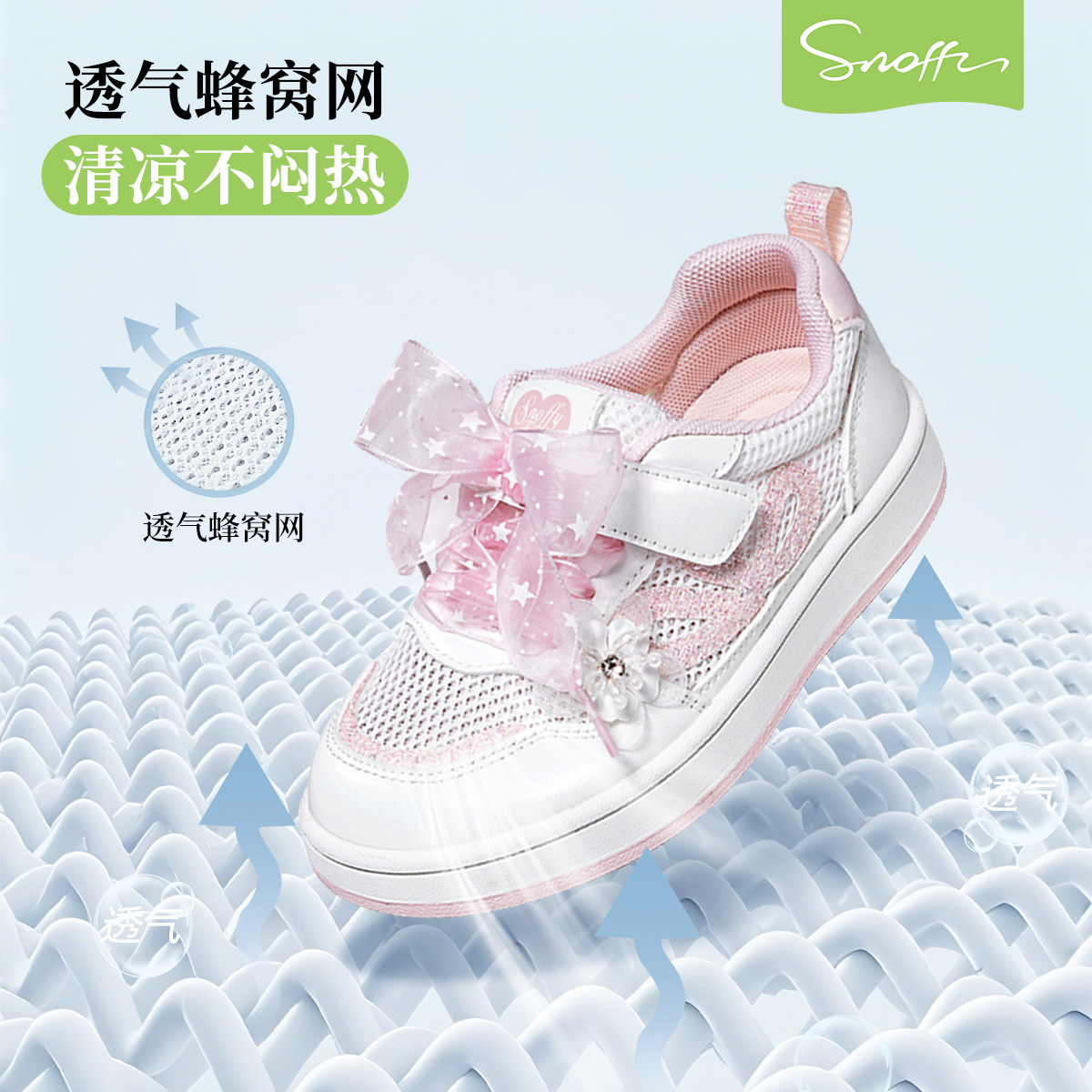 斯纳菲女童运动鞋2026夏季新款小女孩网面透气凉鞋低帮软底板鞋