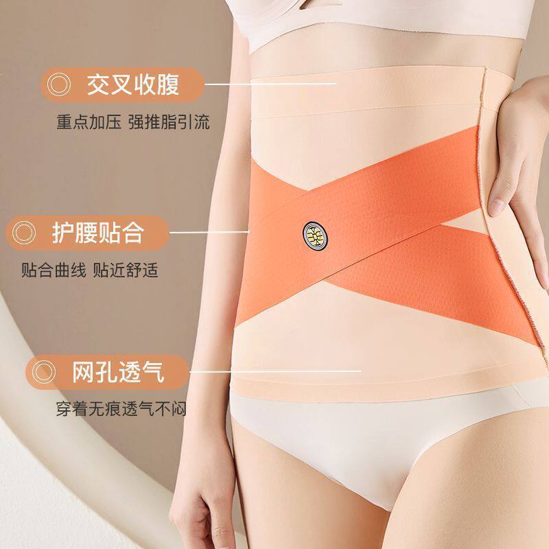 冰丝不卷边交叉收腹腰带塑形收胃肚子护腰带大码无痕塑身腰封塑身