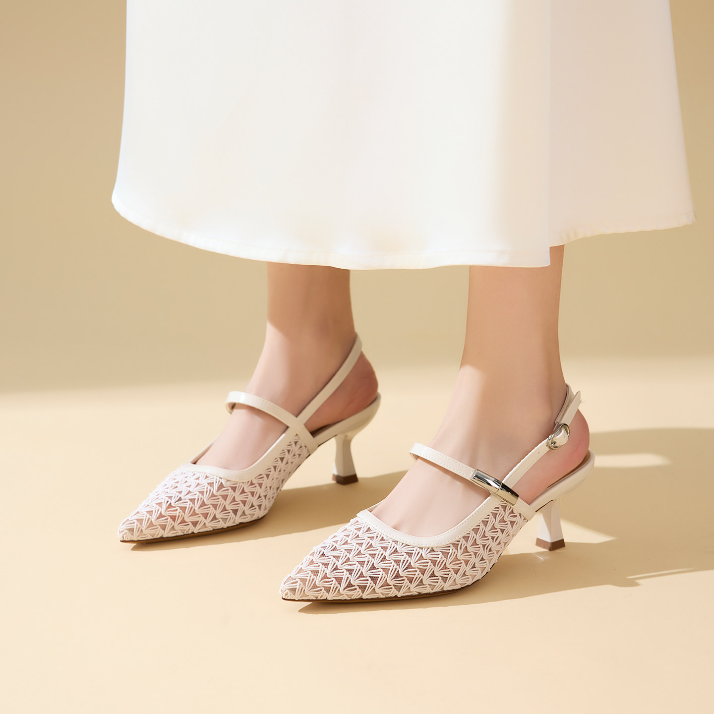 奥康 女鞋2026夏季新款轻熟尖头细跟高跟鞋单鞋透气网纱包头凉鞋