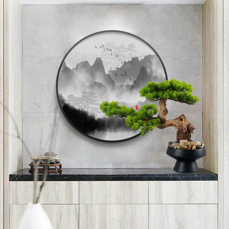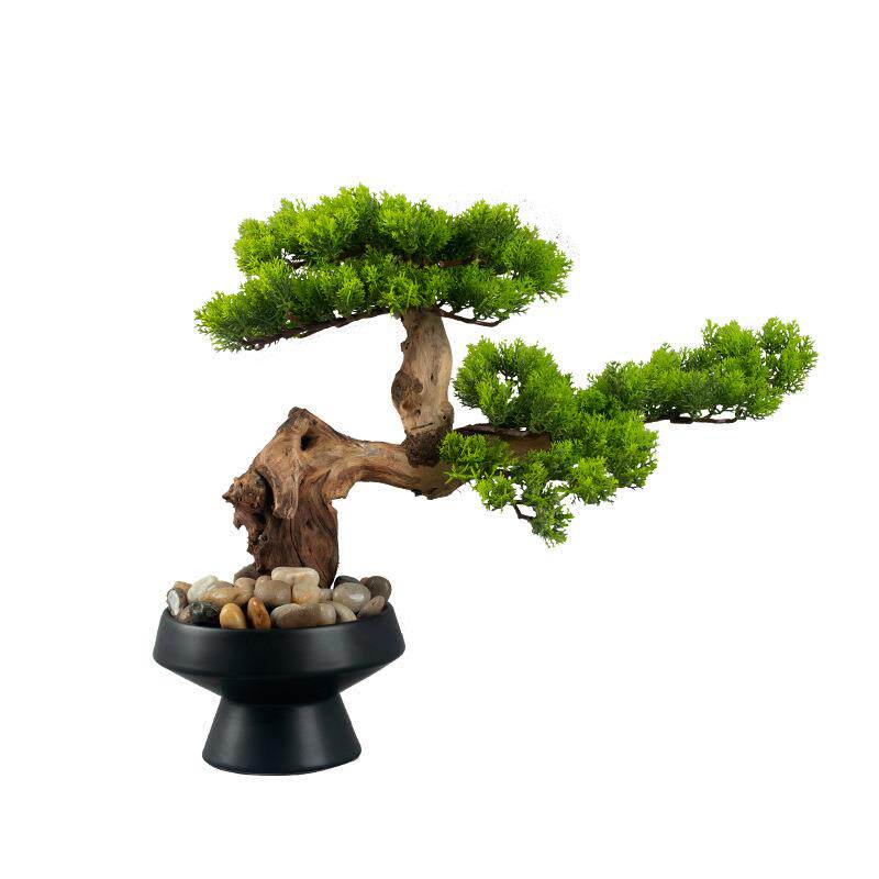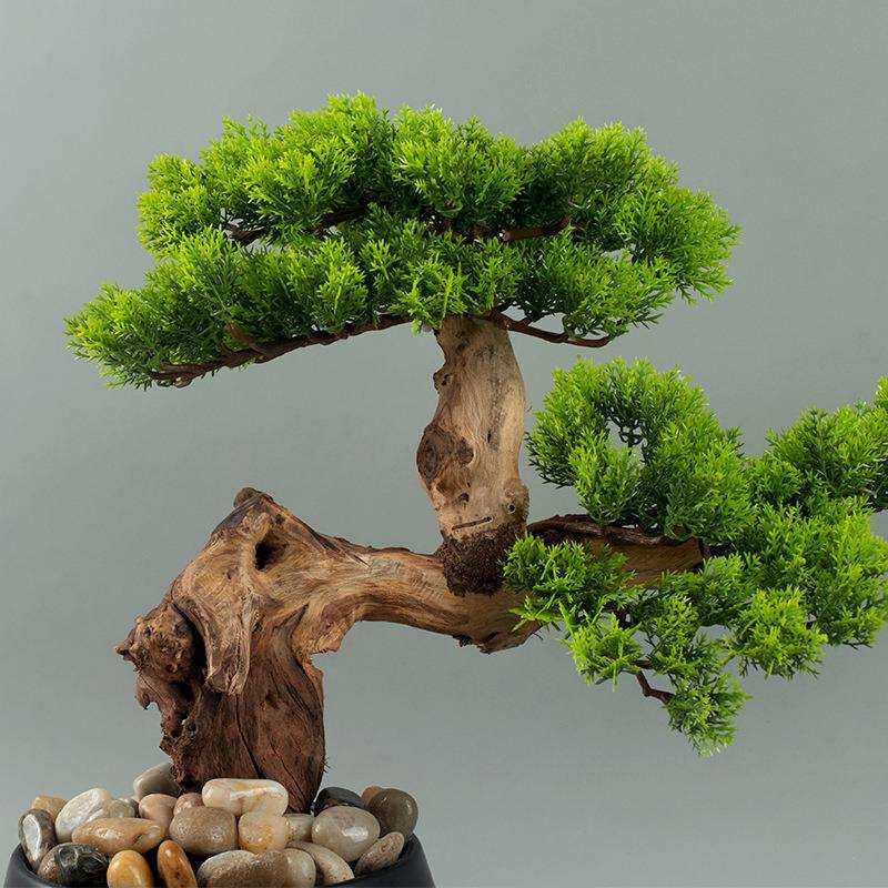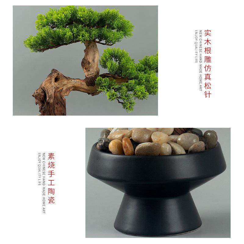 新中式创意盆景茶室桌面绿植仿真树迎客松盆栽摆设松树罗汉松造景