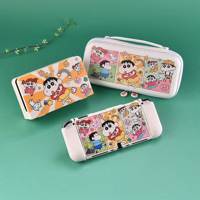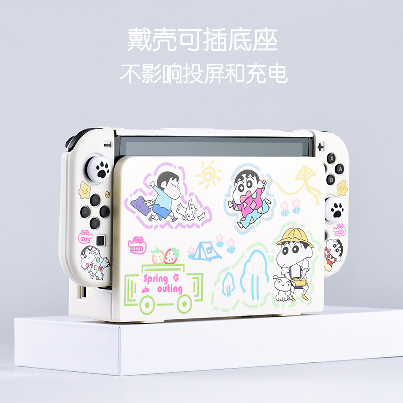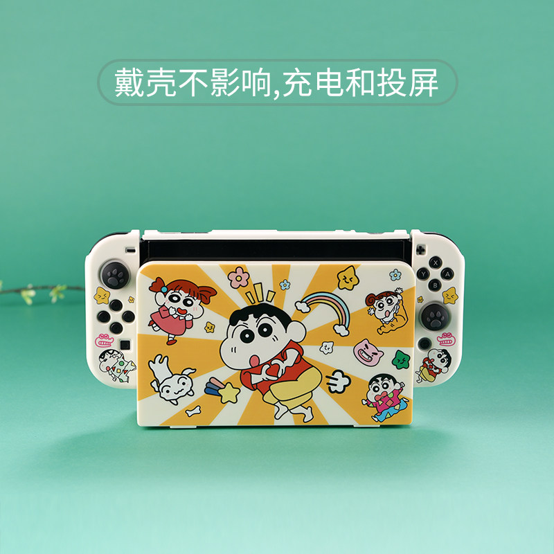 红印任天堂switch保护套oled硬壳全包底座壳蜡笔小新NS续航版保护壳分体一体软手柄套摇杆帽switch配件收纳包
