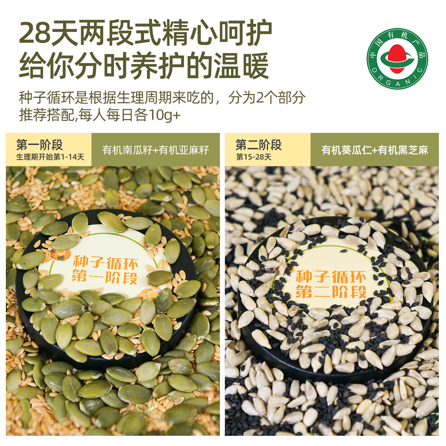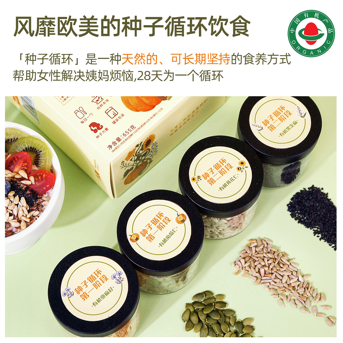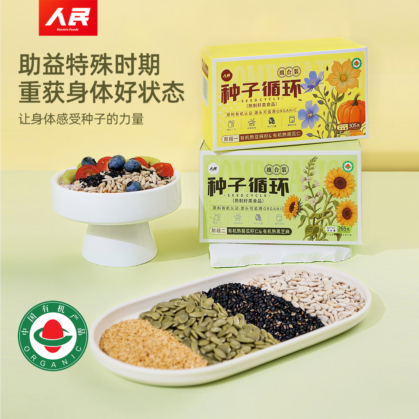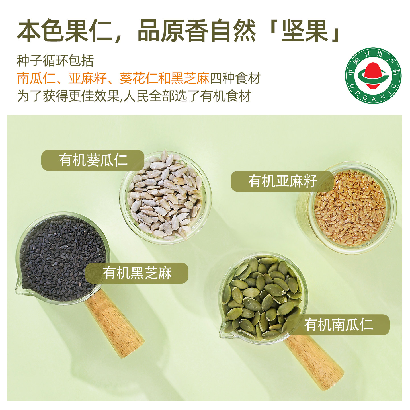人民食品有机种子循环组合混合坚果仁葵花籽南瓜子亚麻籽芝麻生熟