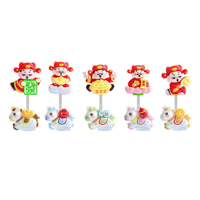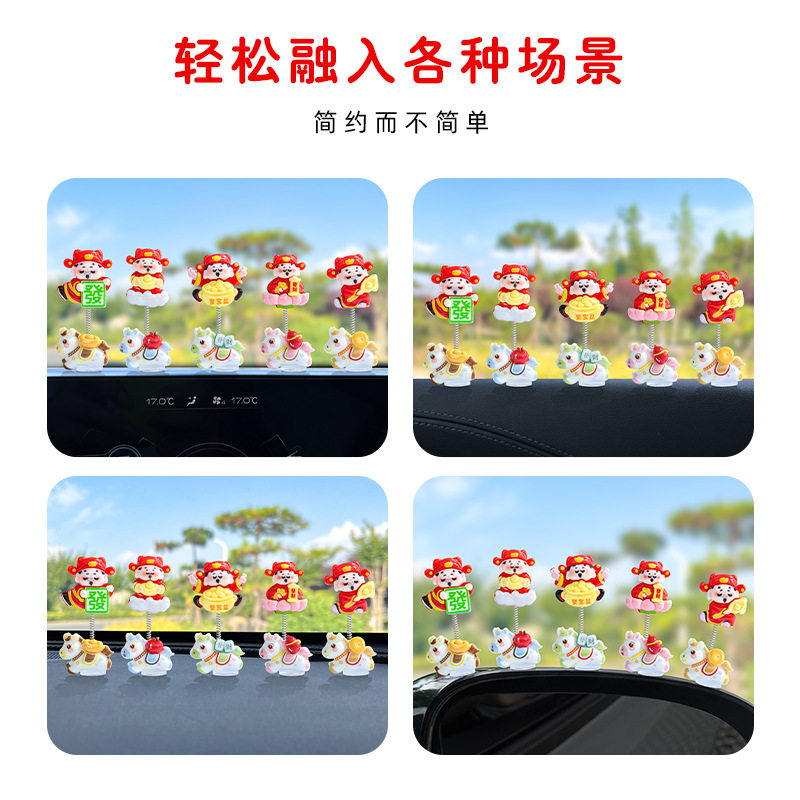 萌趣生肖马年财神爷汽车摆件电动车内饰中控台显示屏办公桌装饰品