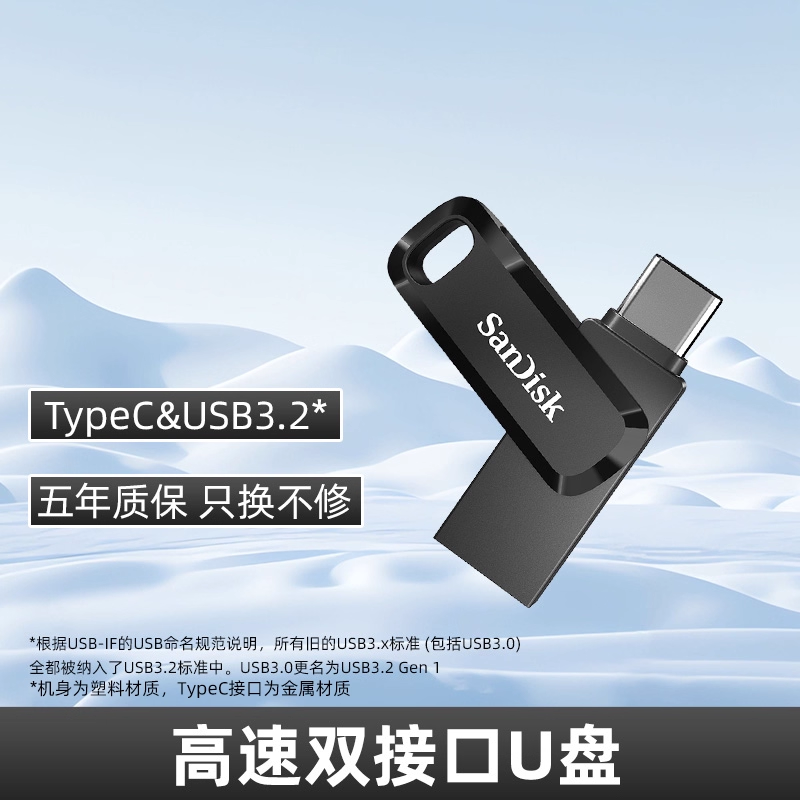 闪迪TypeC手机电脑两用U盘256g大容量高速双接口正品优盘内存扩容