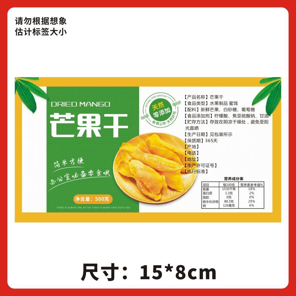芒果干标签食品彩色铜版纸批量印刷覆膜防水通用不干胶贴纸