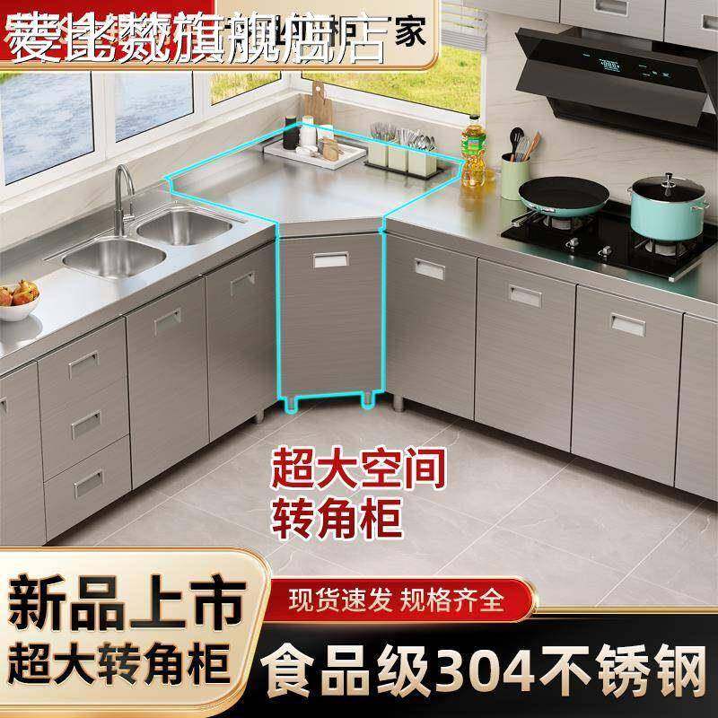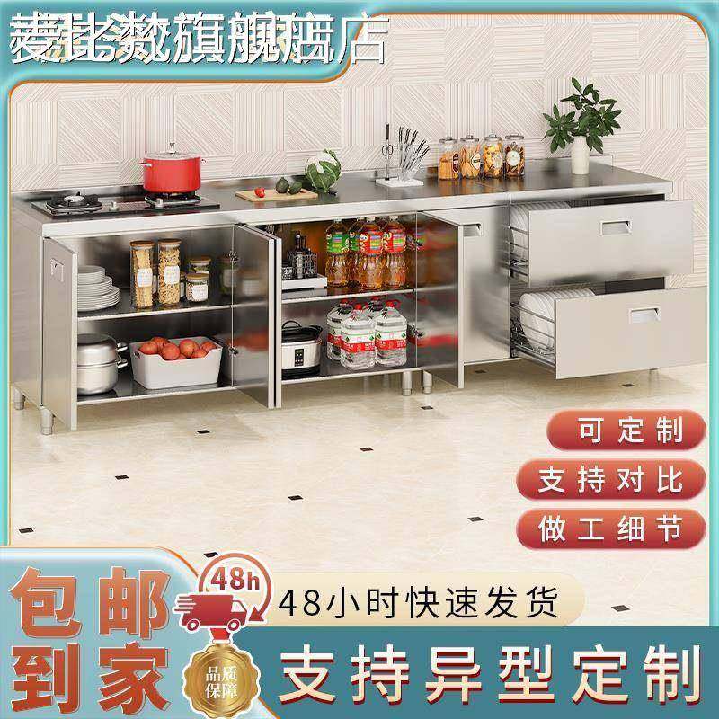 麦比梵304整体不锈钢厨房橱柜简易灶台一体厨房储物收纳碗柜家用小户型床笠拉车