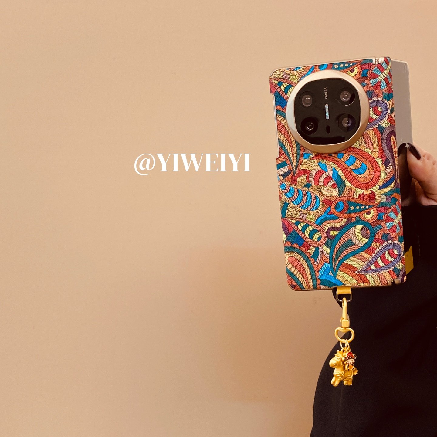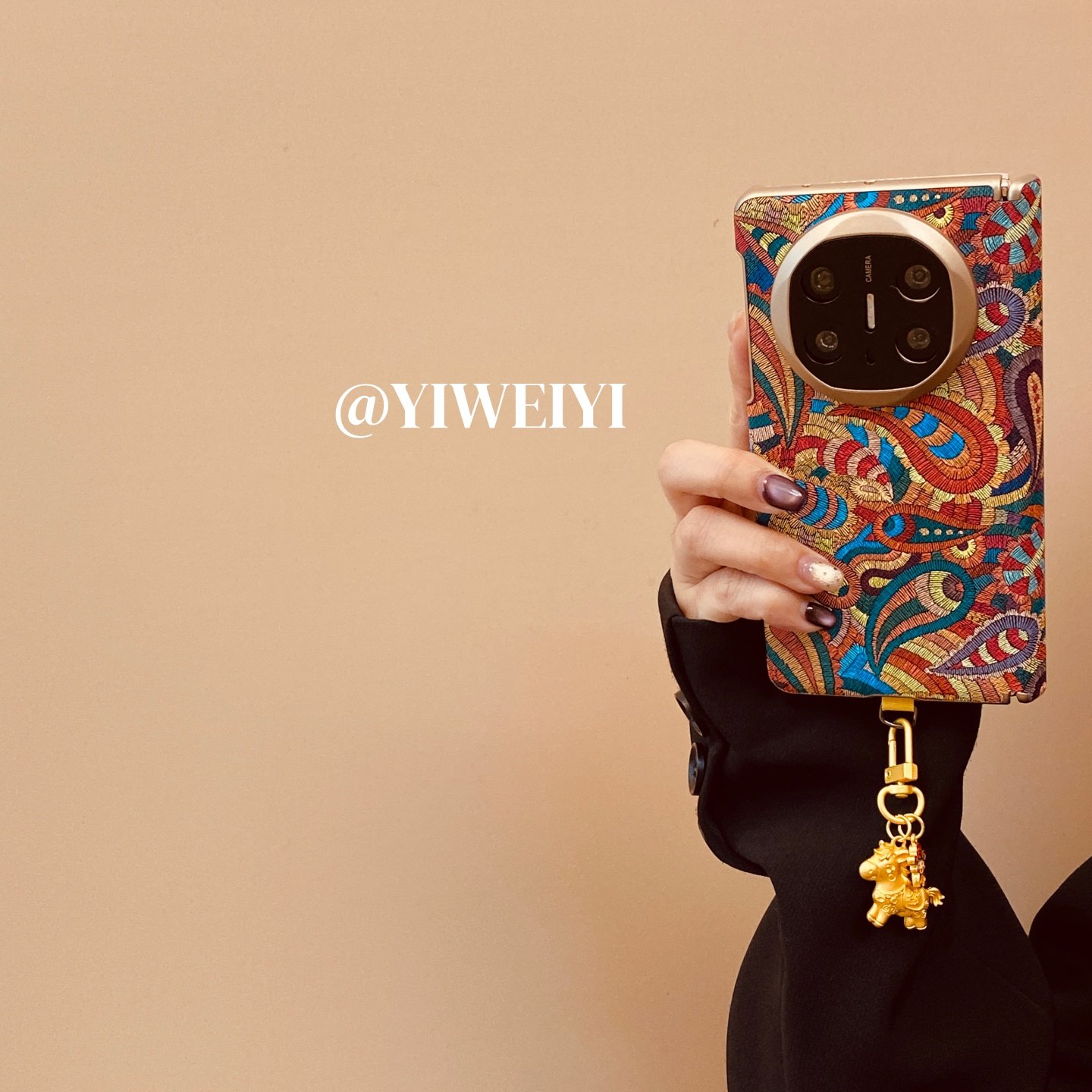 依维意 适用于华为MateX7手机壳MateX6国风奢华折叠屏MateX5典藏版双中轴腰果花X3财神马上发财挂件秋冬新款