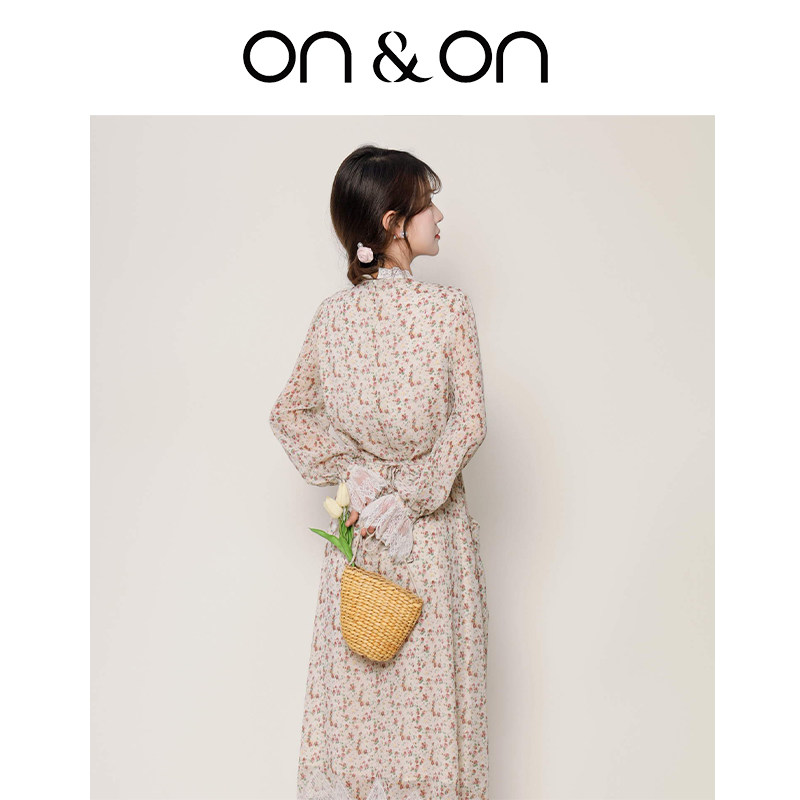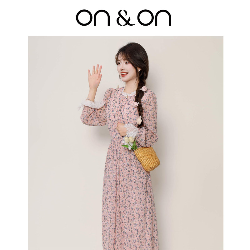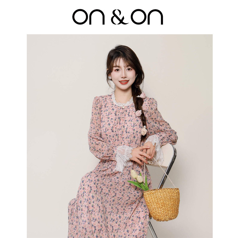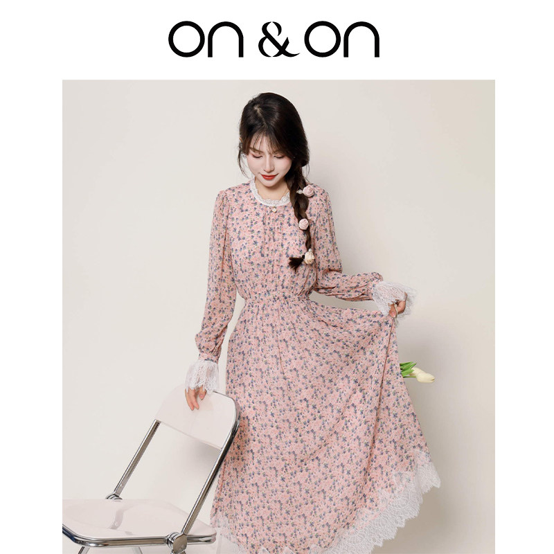ON&ON/安乃安2025冬季新款韩系蕾丝拼接碎花甜美气质收腰连衣裙