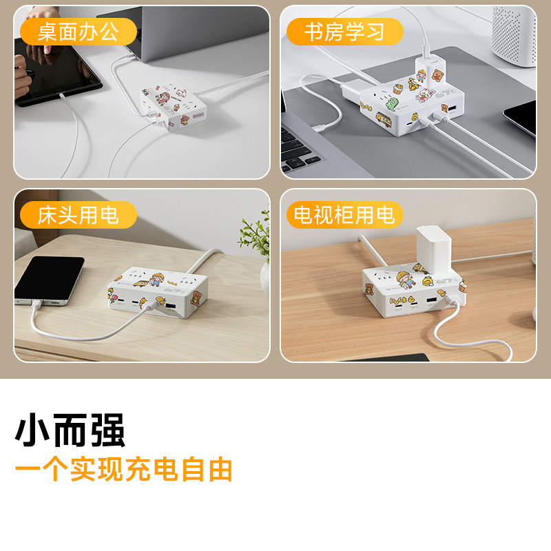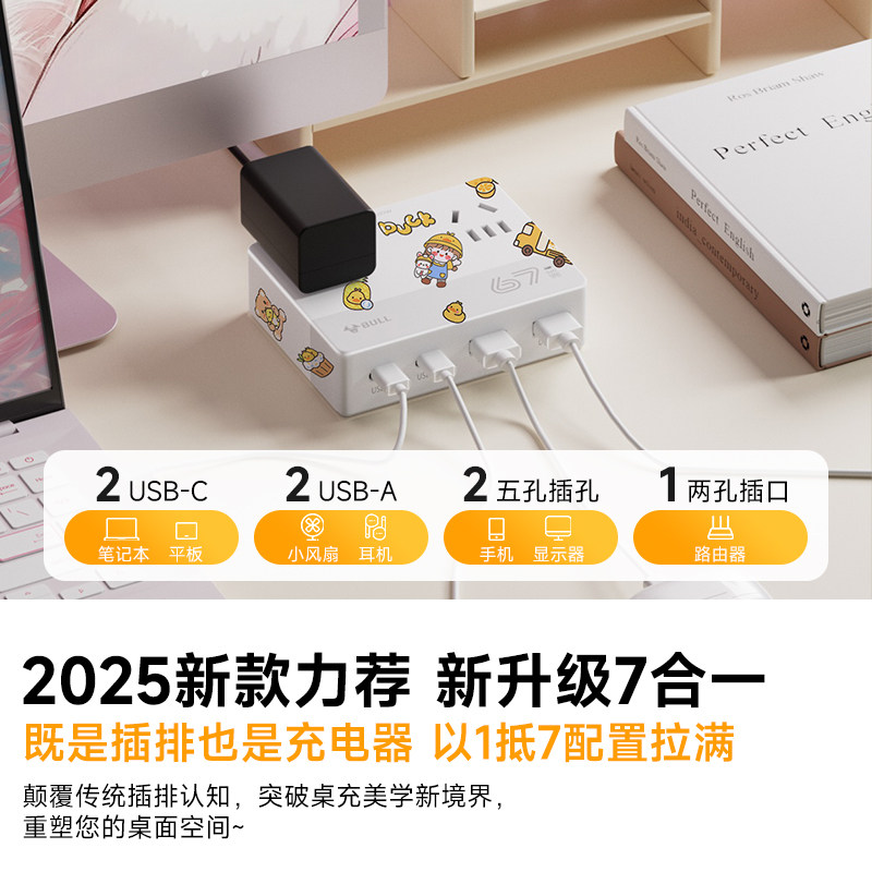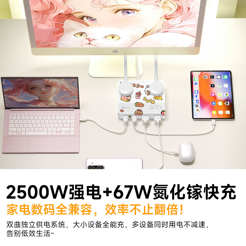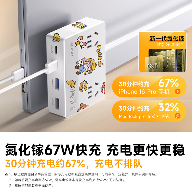 公牛桌面充电站氮化镓插排typec插座智能多口带usb充电器多功能排插uf1673电源手机超级快充67w扩展插线板