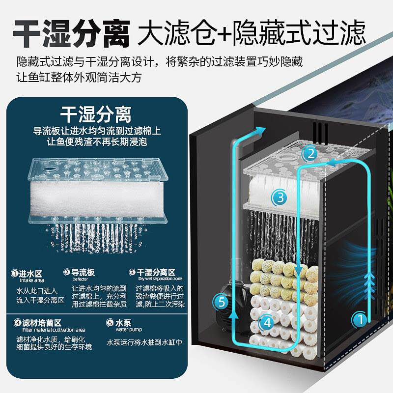 新款溪流缸南美鱼缸超白玻璃侧滤小型客厅生态造景一体式全套