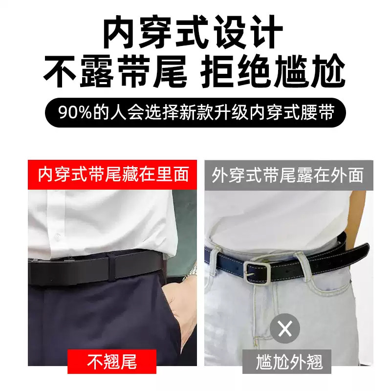 日本2026新款皮带男士裤腰带年轻潮商务简约自动扣裤带结婚真牛皮