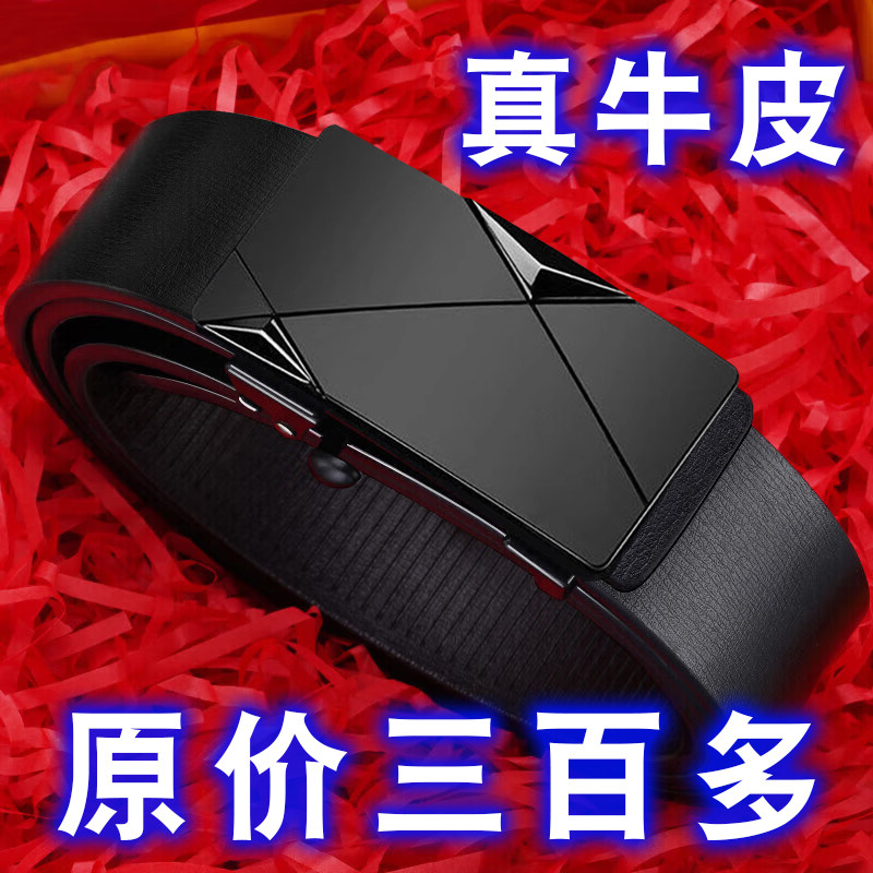 男士皮带纯牛皮腰带真皮自动扣青年中年百搭商务裤带休闲无牙无孔