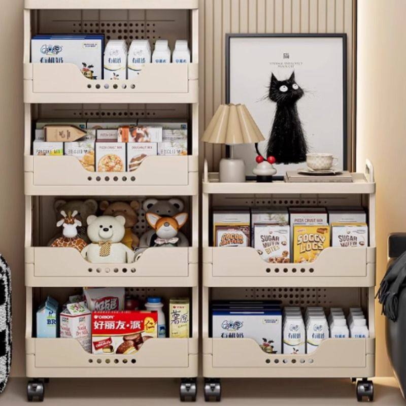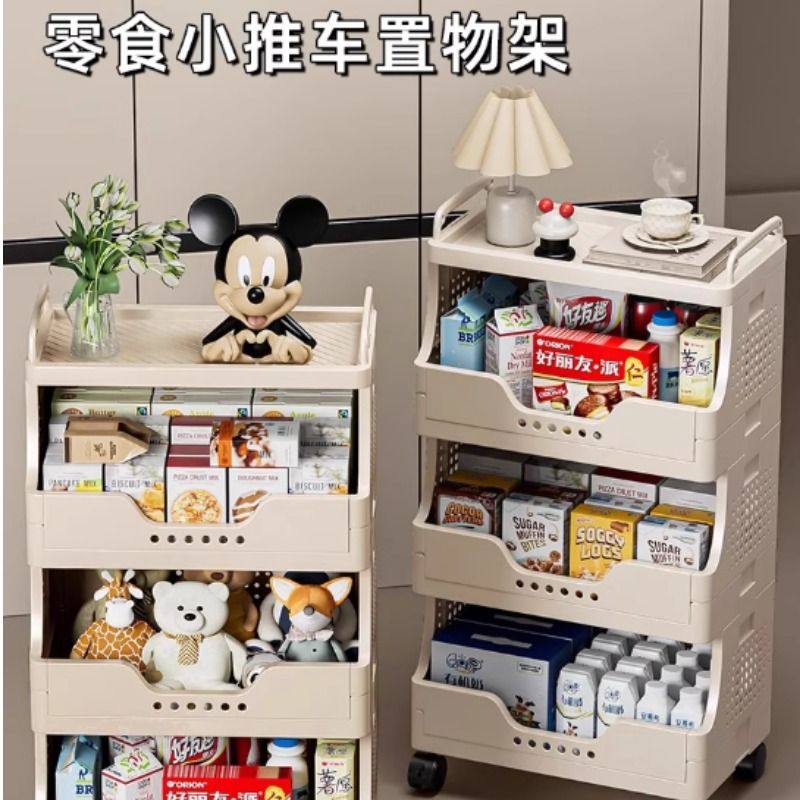 落地式零食置物架小推车收纳架落地多层客厅整理架带轮移动储物架