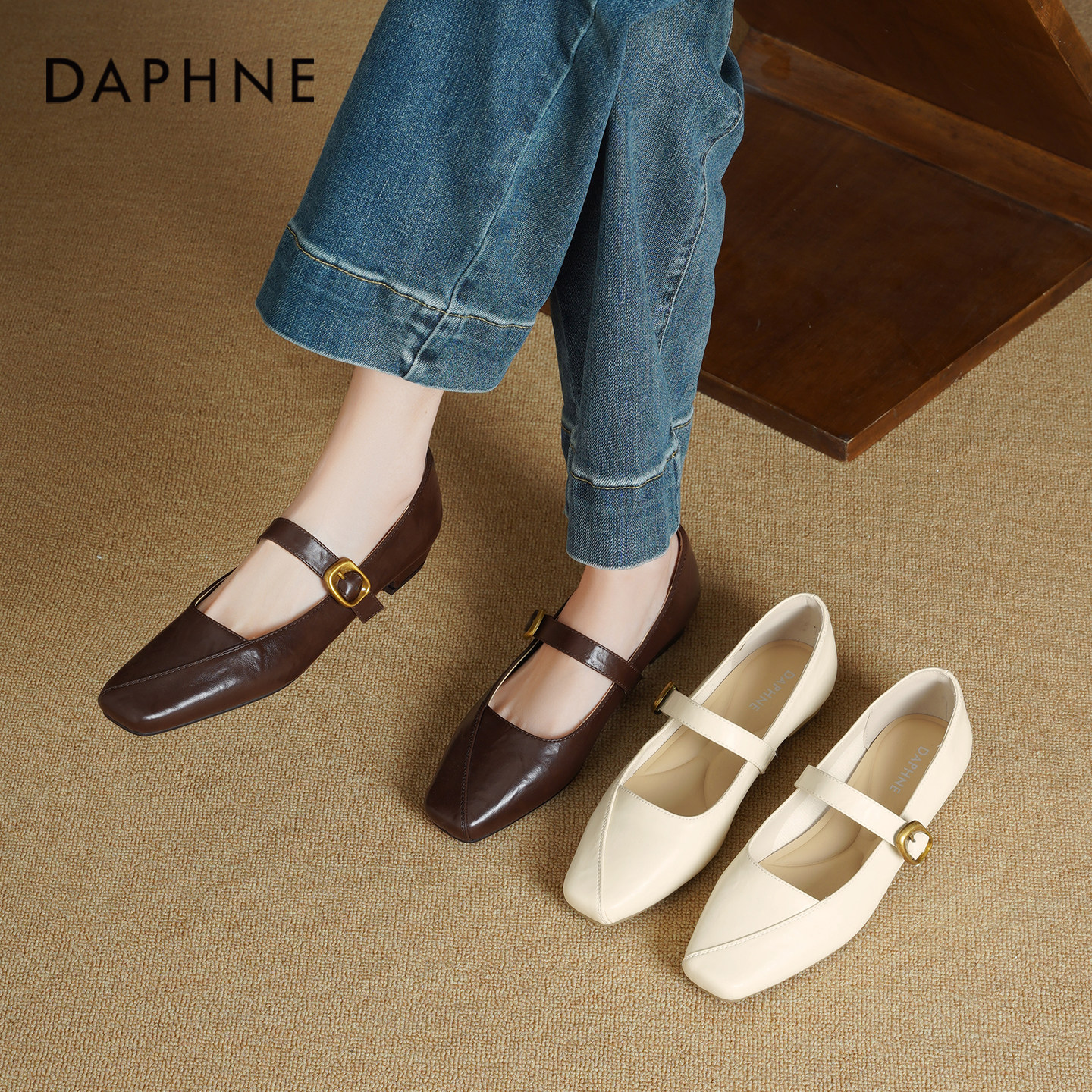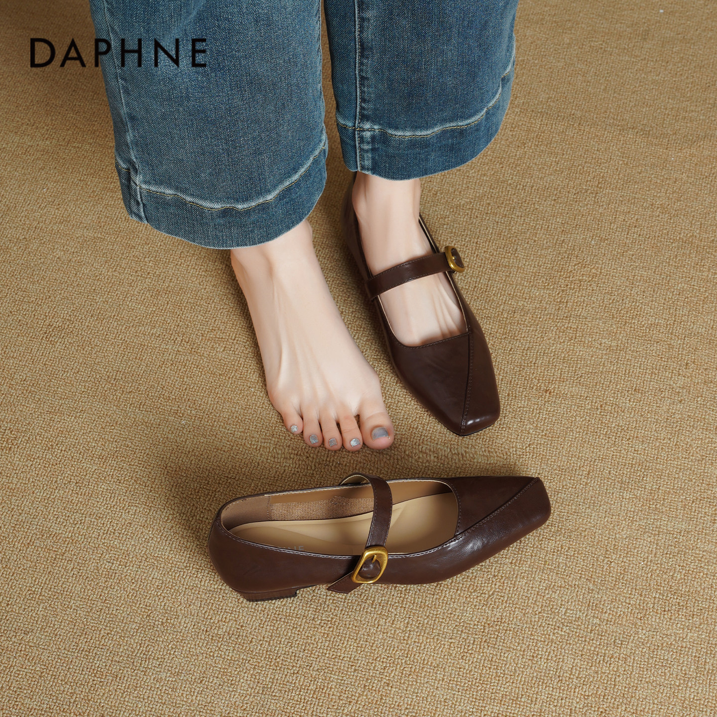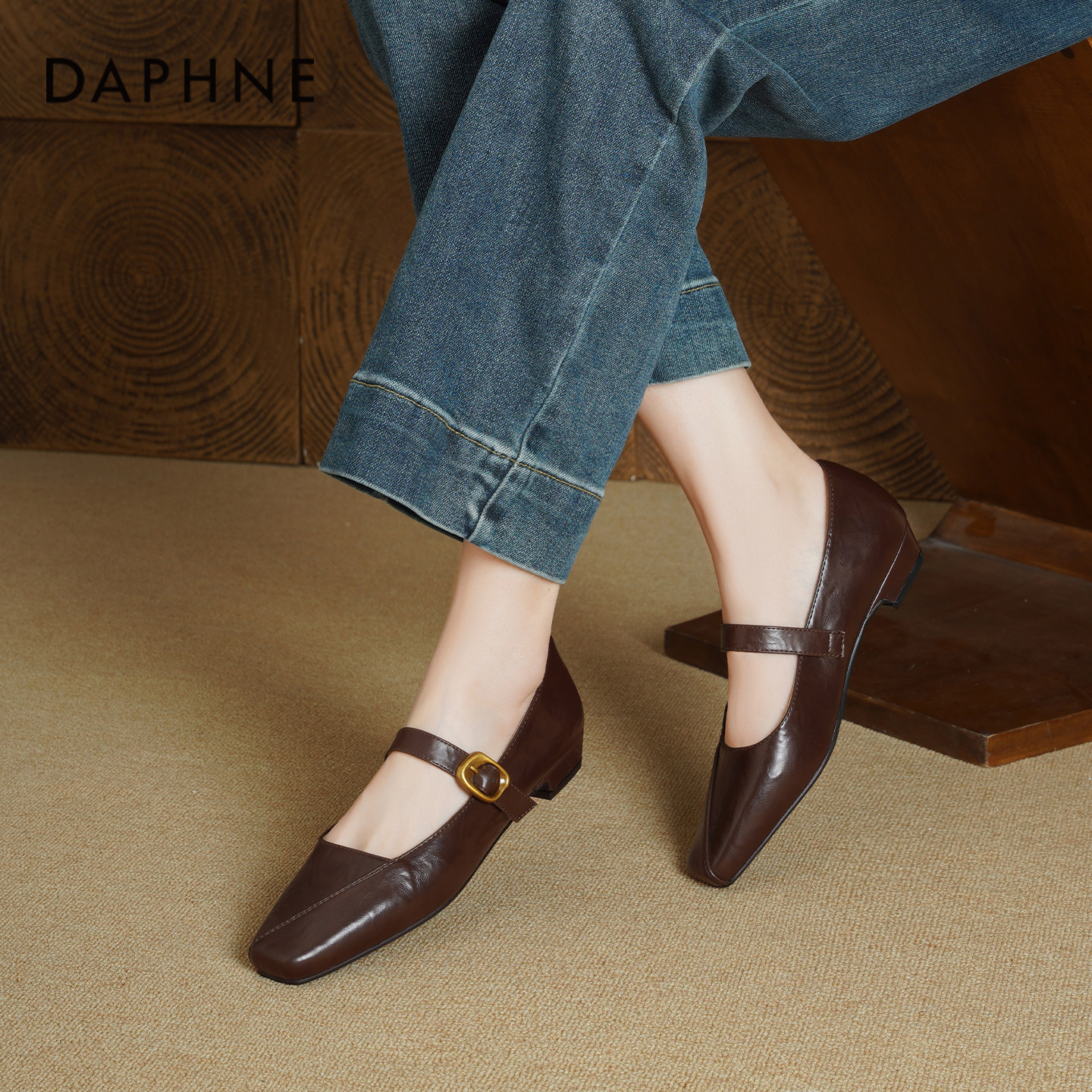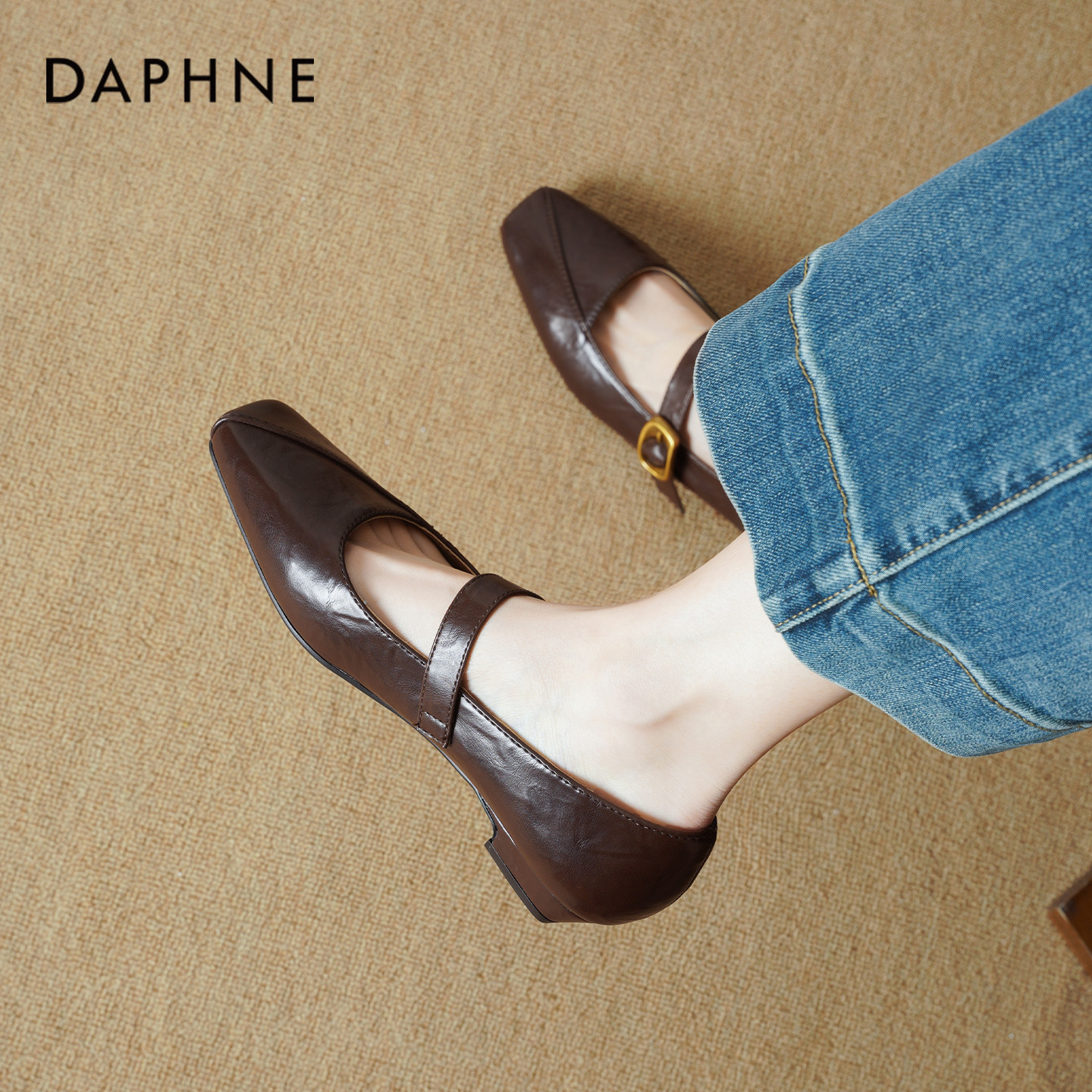 达芙妮法式单鞋女2026春季新款棕色复古浅口玛丽珍鞋软底小皮鞋女