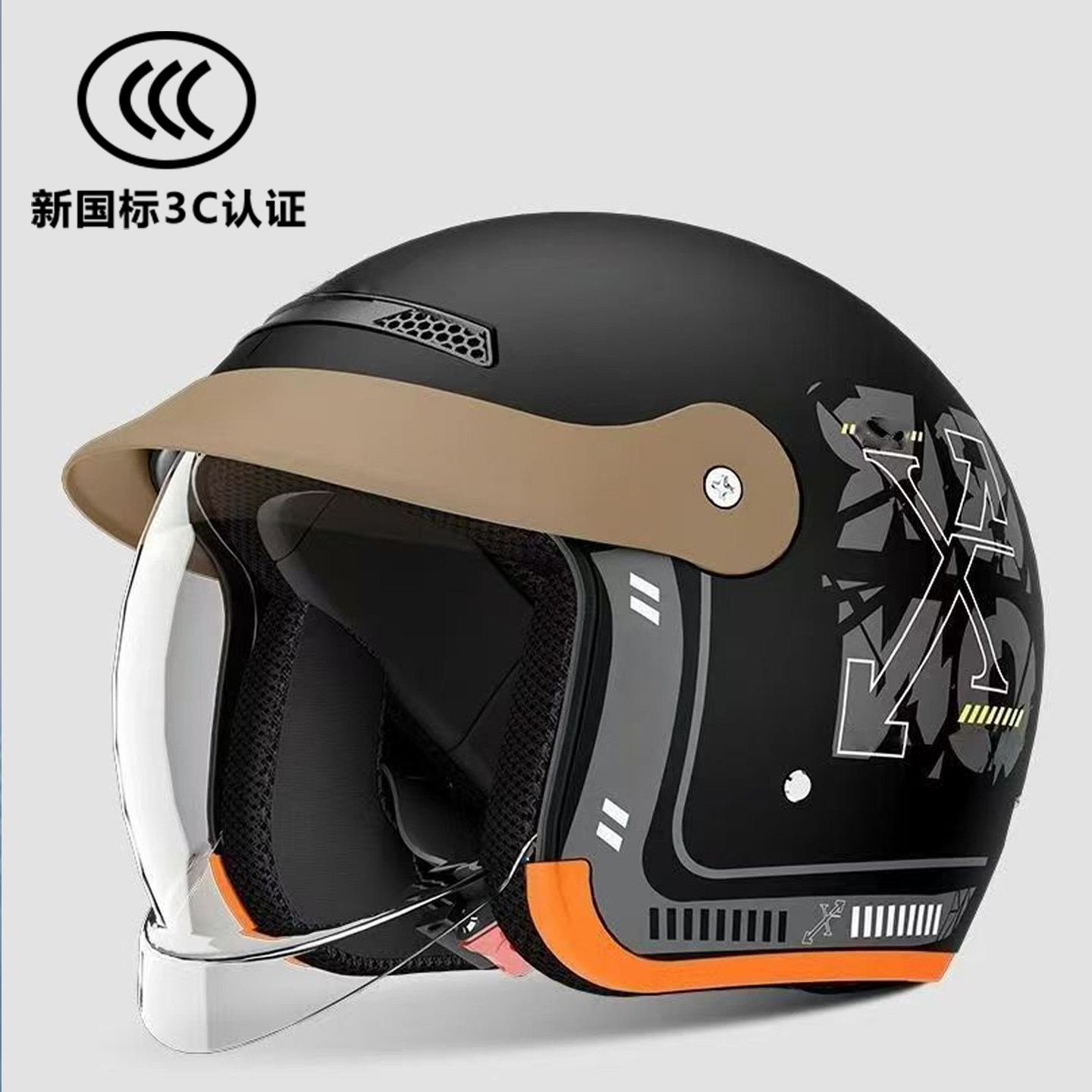 野马3C认证新国标电动摩托车头盔夏季防晒双镜男女半盔四季安全帽