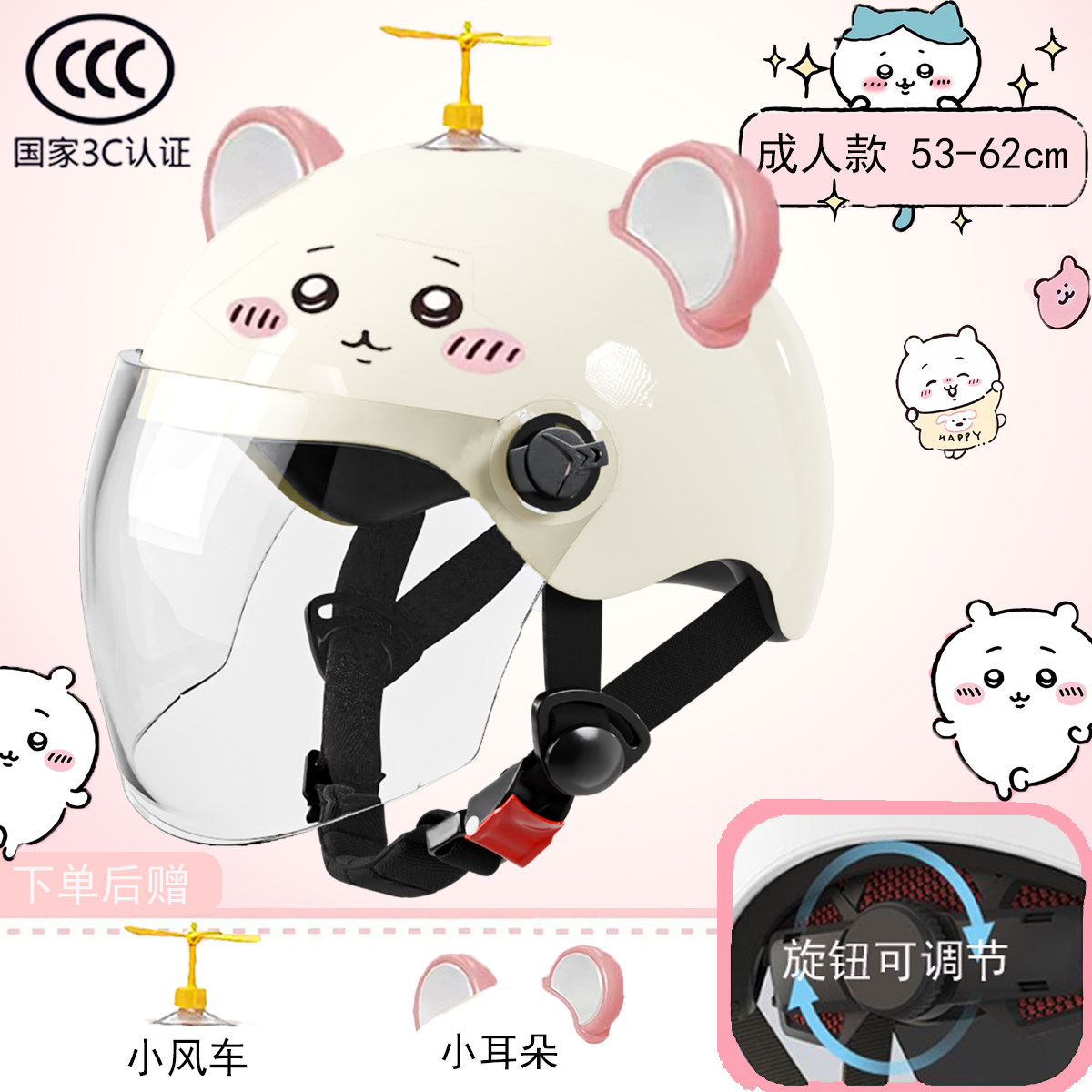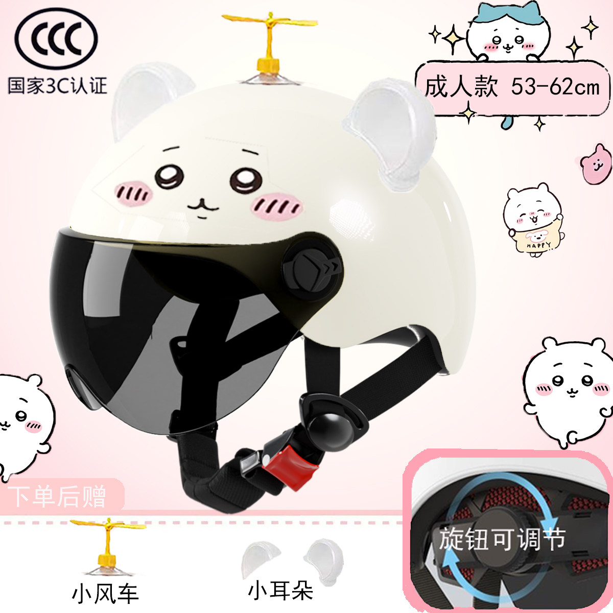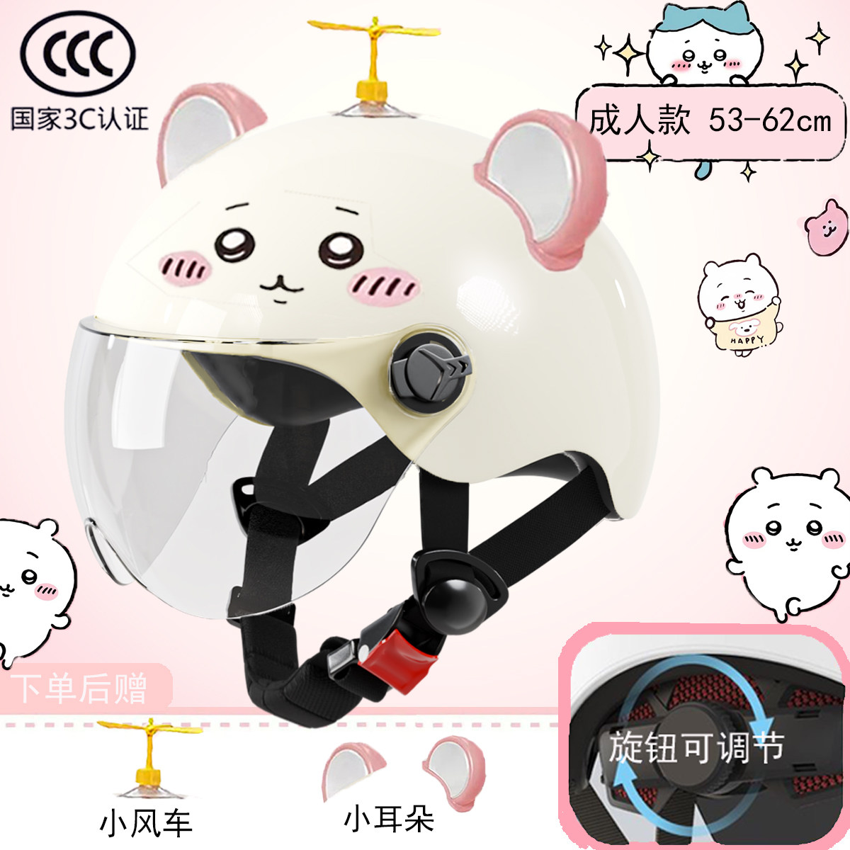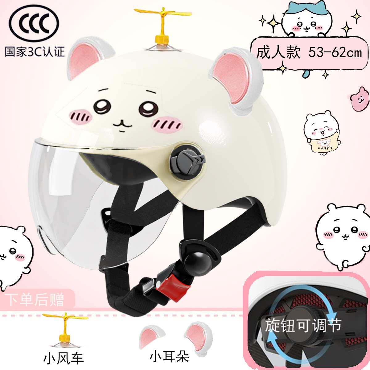新国标3c认证电动车头盔长镜防晒可爱吉伊小八旋钮调节款防雾镜片