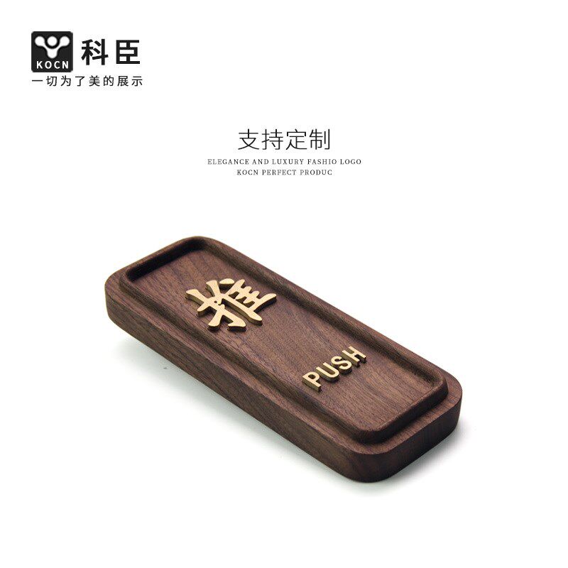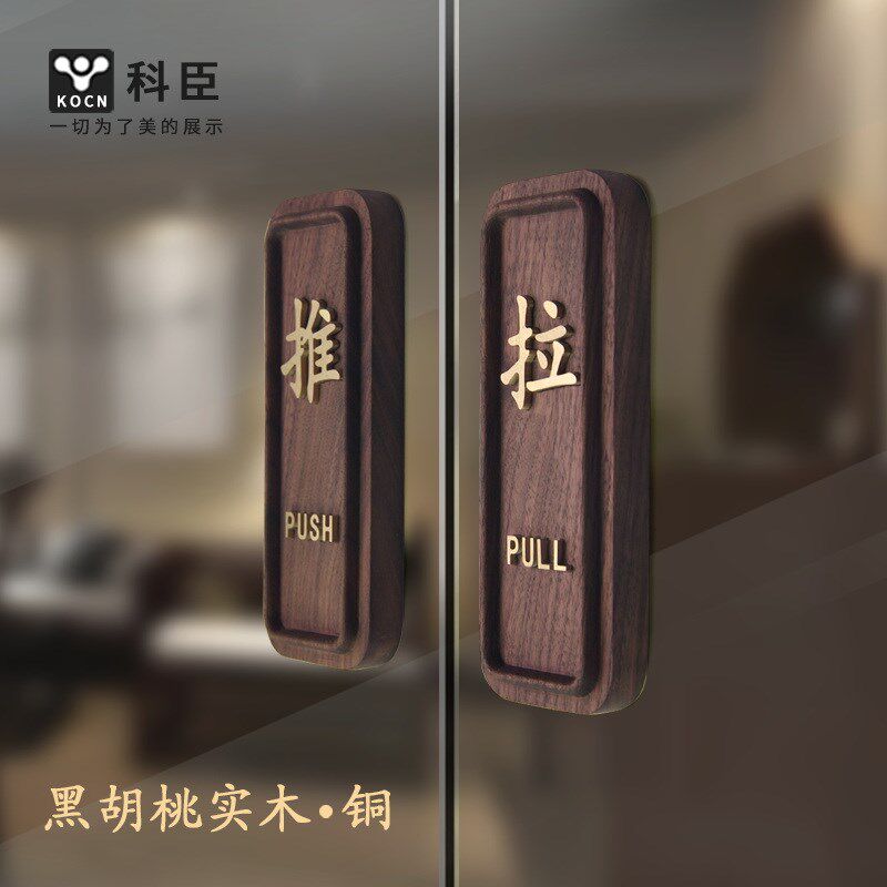 推拉门贴实木雕刻门牌玻璃门标识牌提示贴标志立体定制3d立体铜浮