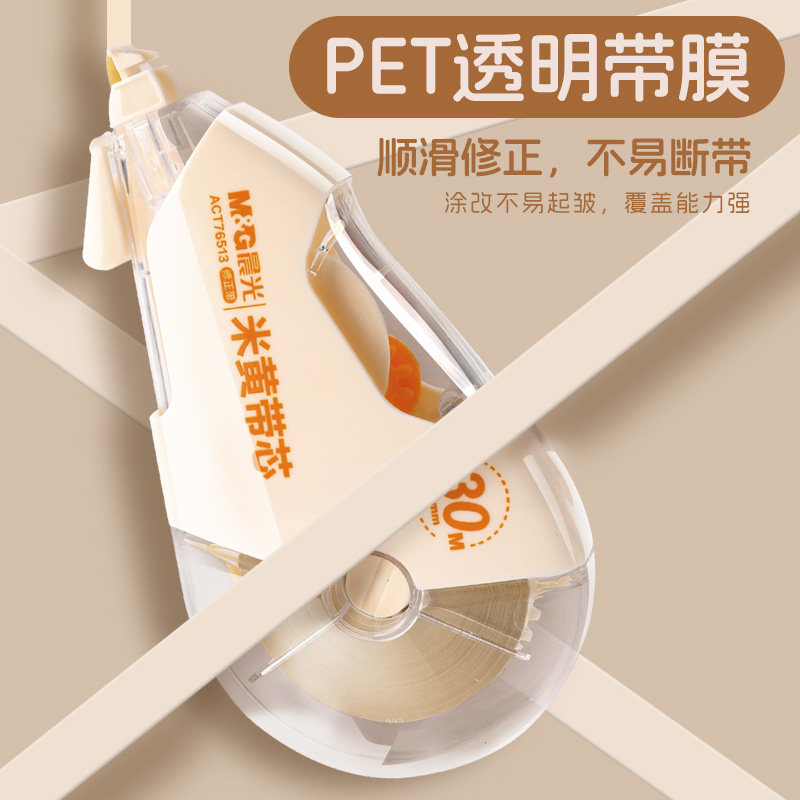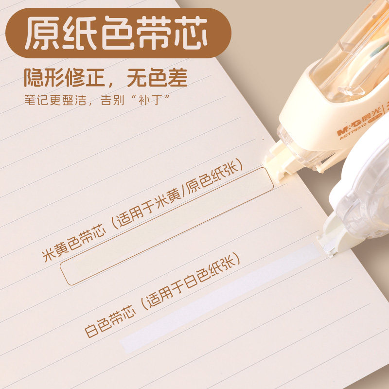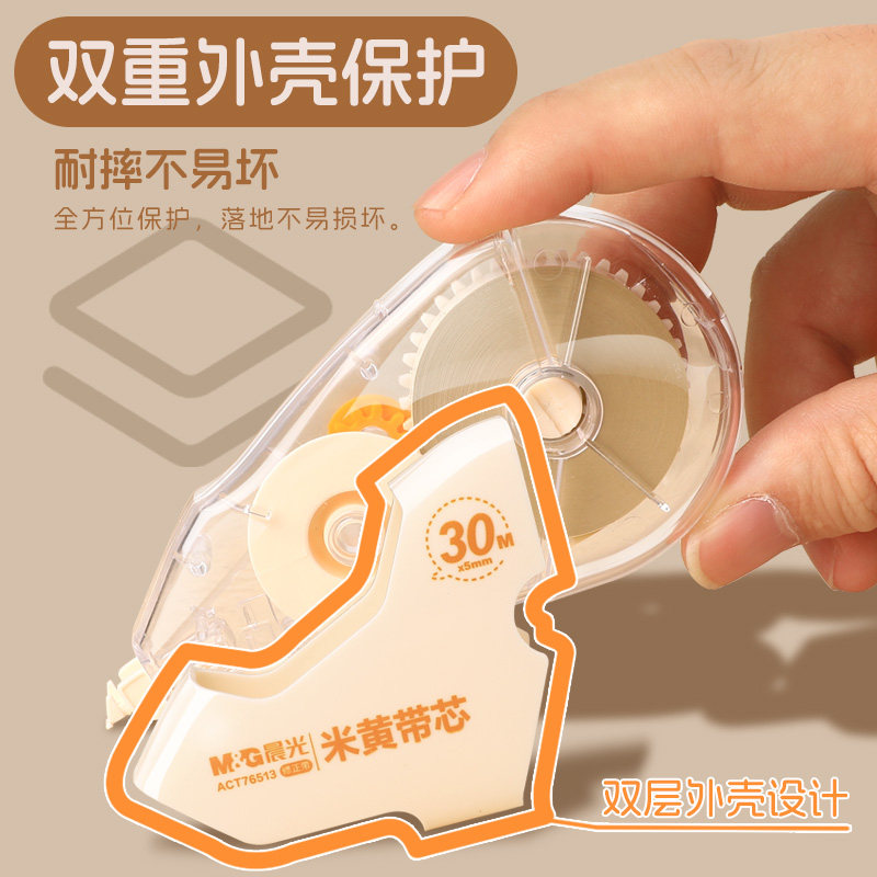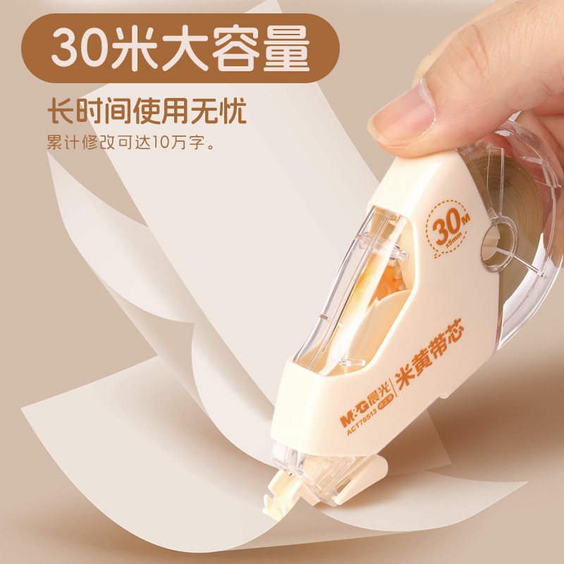 晨光隐形修正带学生专用无色差顺滑修正大容量不断带涂改带覆盖力强高颜值简约高保护耐摔耐用米黄带芯改正带