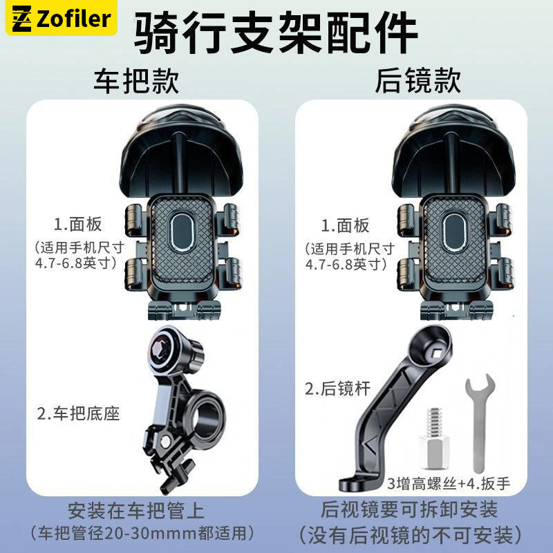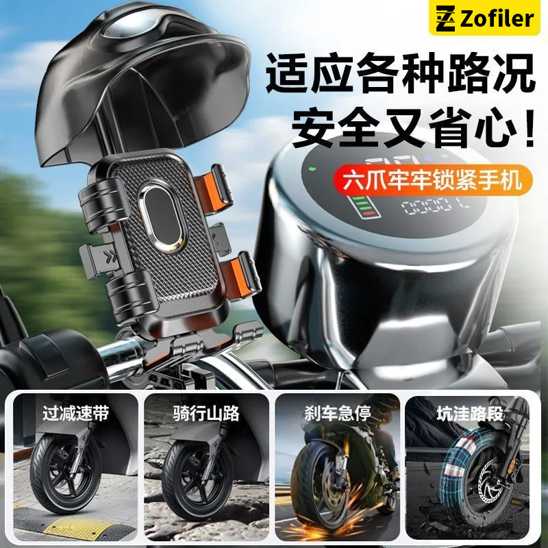 电动车手机导航支架小头盔2025新款防震防抖摩托电瓶自行车外卖骑手代驾专用后视镜款山地公路车通用固定支架