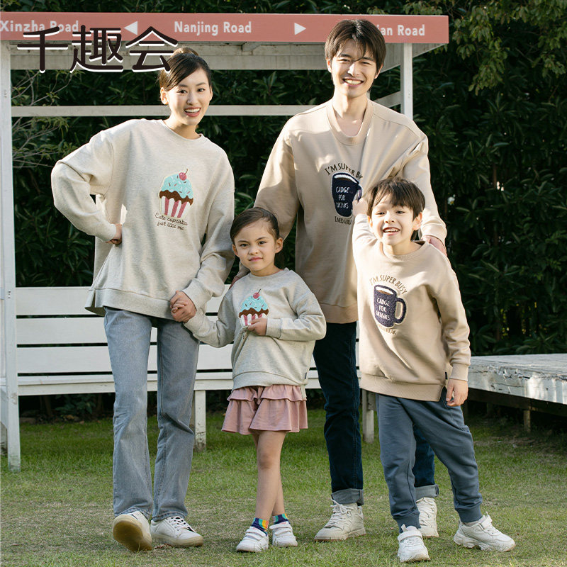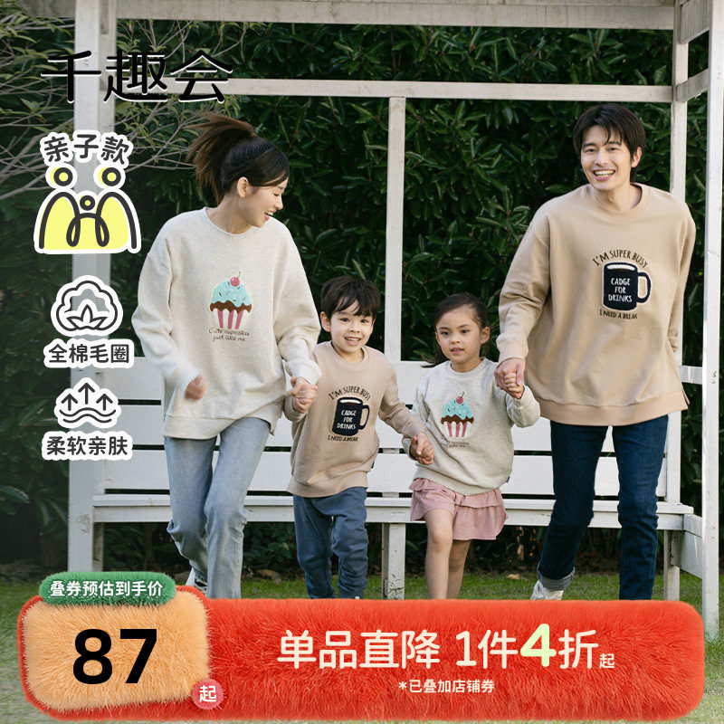 千趣会童装25春秋款儿童亲子款卫衣时尚洋气毛圈布男童女童