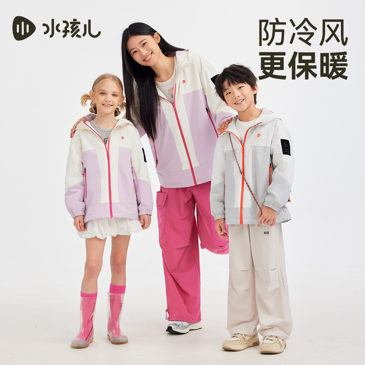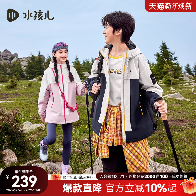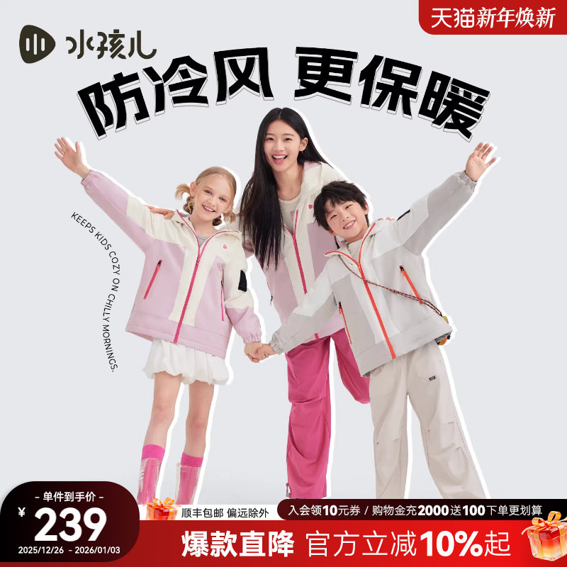 水孩儿加绒外套女2025秋冬新品男童三防厚风衣亲子连帽上衣