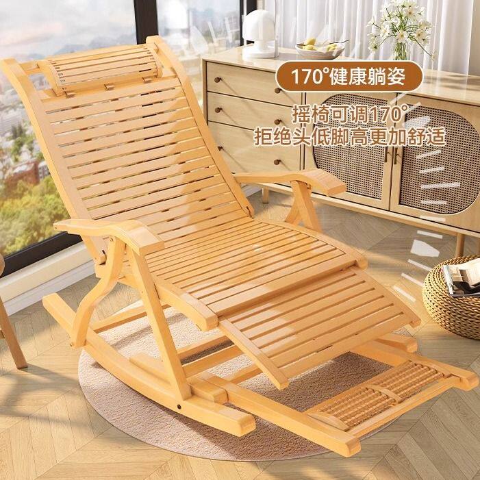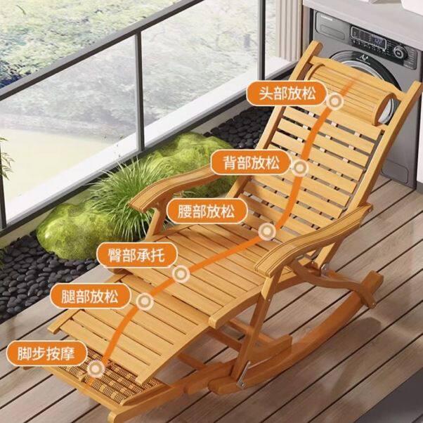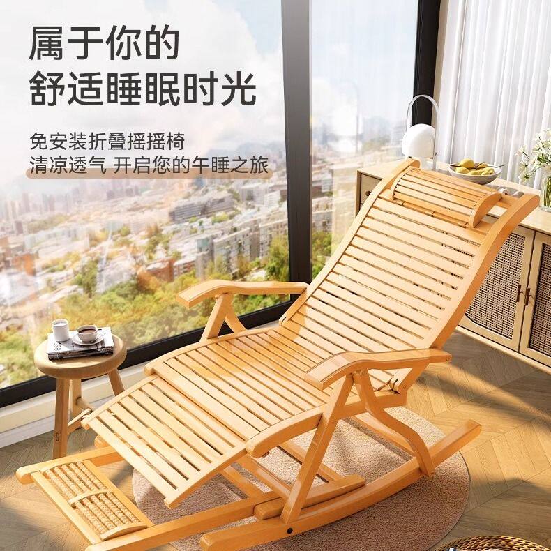 a竹摇椅阳台休闲躺椅老人摇摇椅家用庭院午休椅子可躺睡折叠逍遥