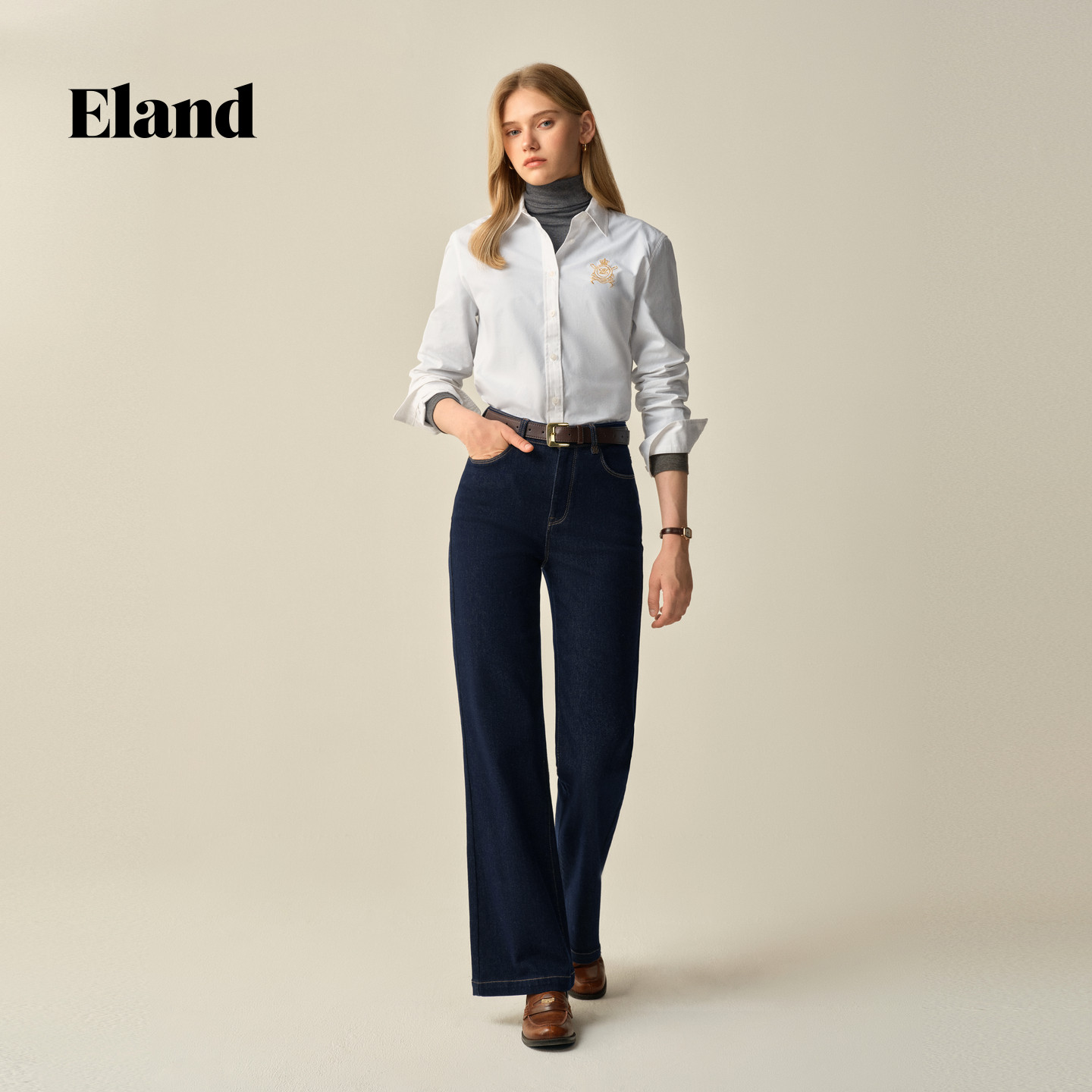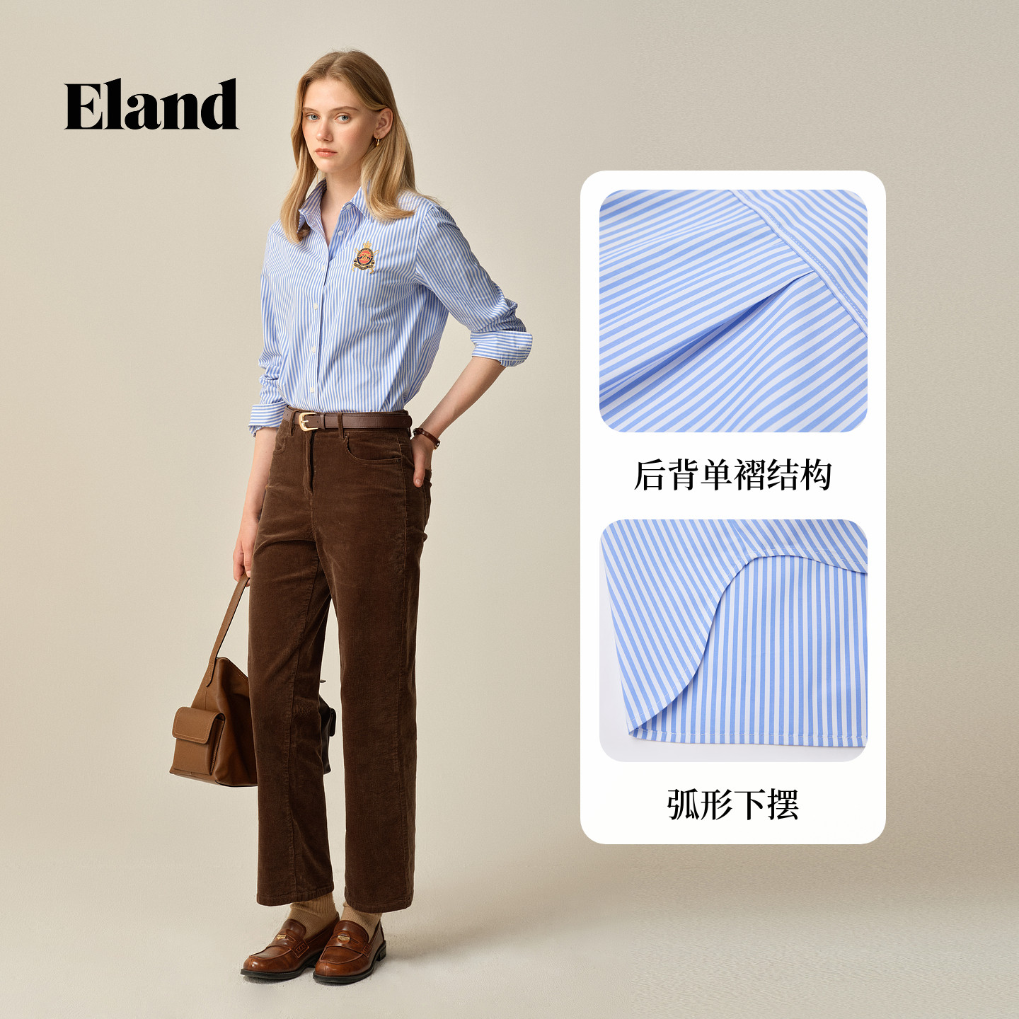 【100%棉】Eland衣恋衬衫女休闲翻领正肩挺括上衣2025冬季新款