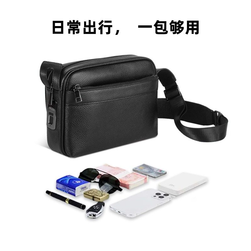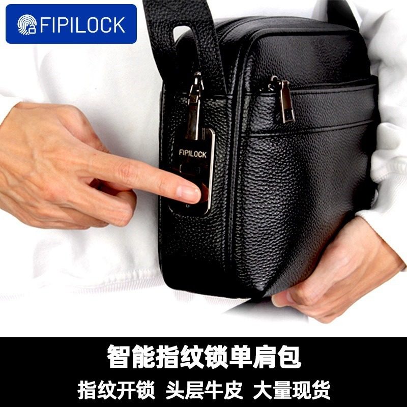 新款男士单肩包斜挎包头层牛皮指纹包指纹解锁男士真皮斜挎包密码