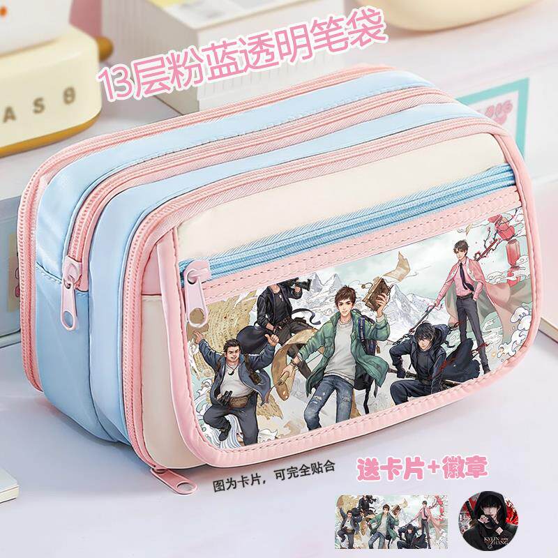 盗墓笔记笔袋粉蓝高颜值痛包可放吧唧卡片大容量高中生简约文具袋