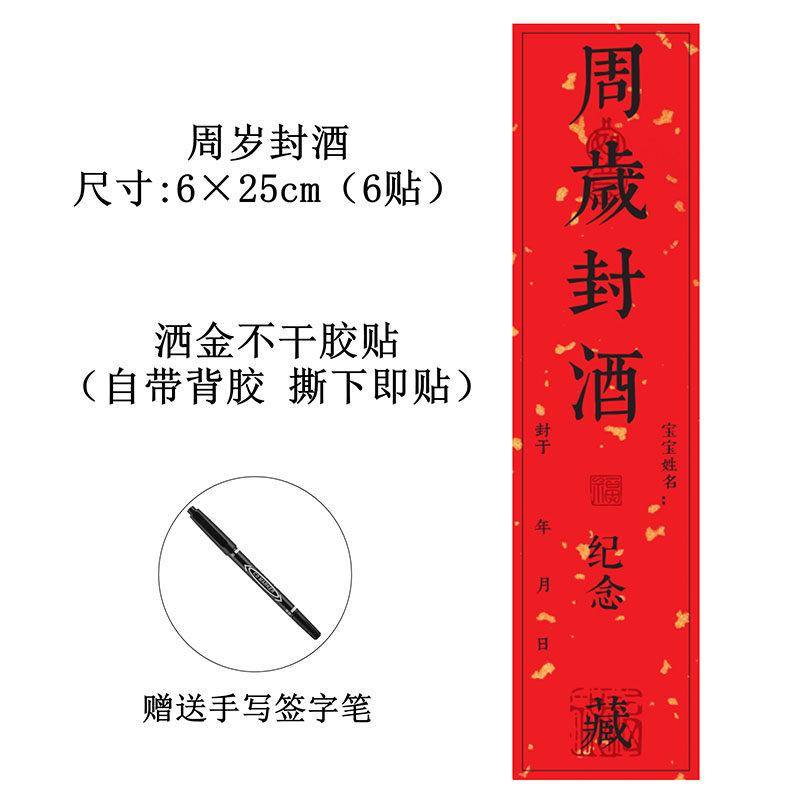 周岁封酒贴纸宝宝满月百日百天抓周宴纪念仪式酒坛酒瓶封条不干胶手足印专用封条贴纸一周岁封酒条DIY创意