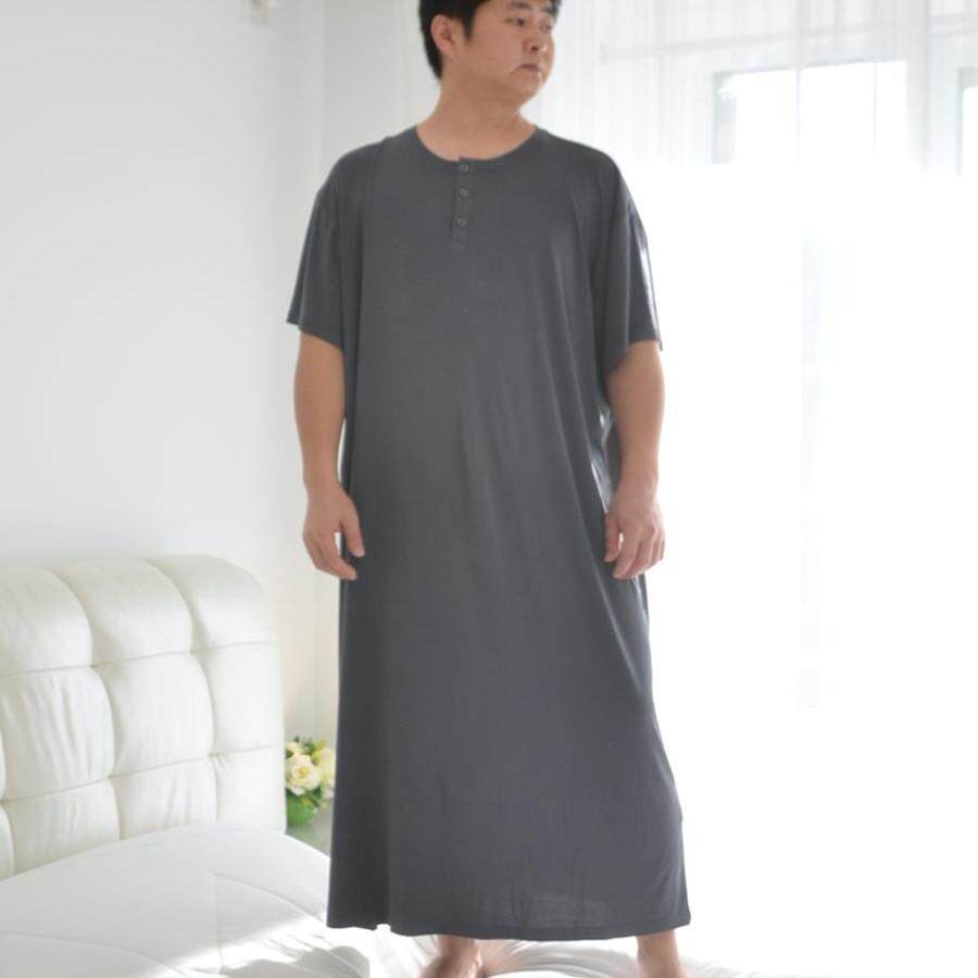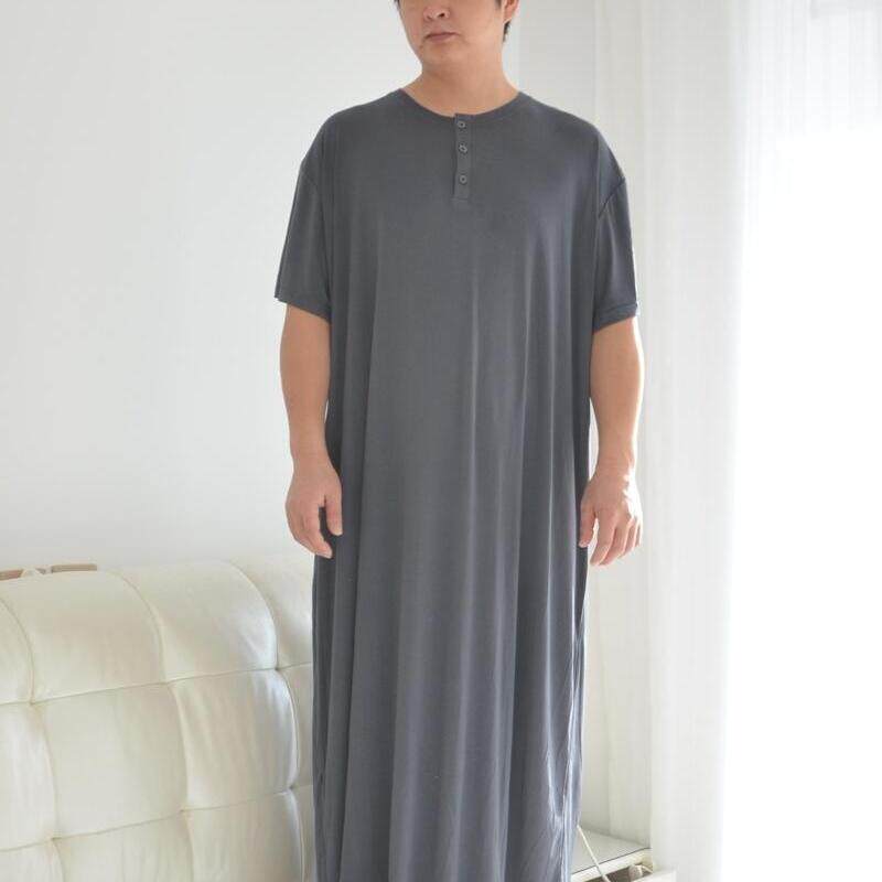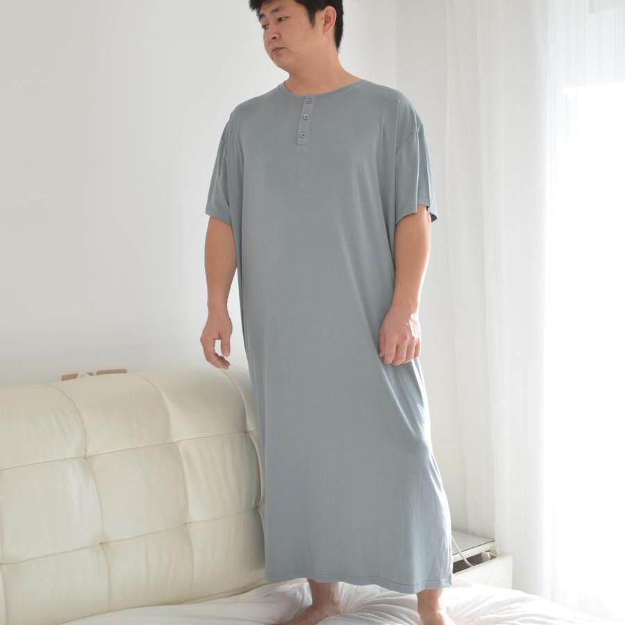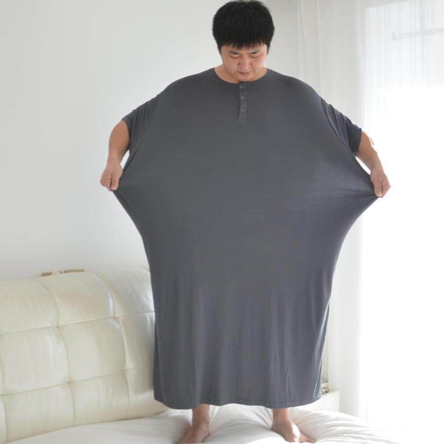 260斤夏季短袖男士莫代尔睡裙超细旦无痕竹纤维300斤长款睡袍睡衣